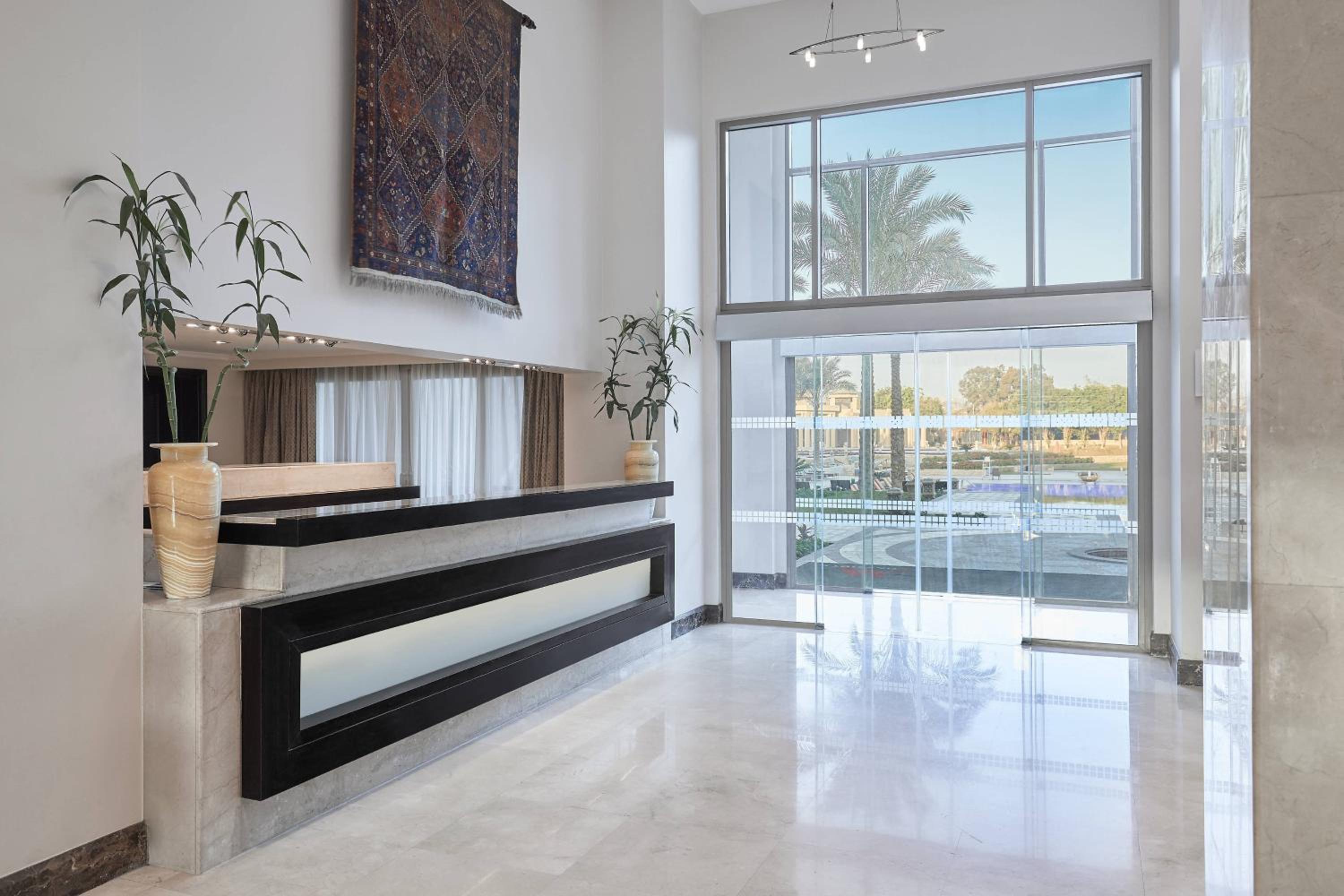 This hotel is impressive for striking views of the pyramids and beautiful grounds. I appreciated the experience for this alone. The woman at the concierge was exceptional in providing help in obtaining tickets to an event in Cairo.