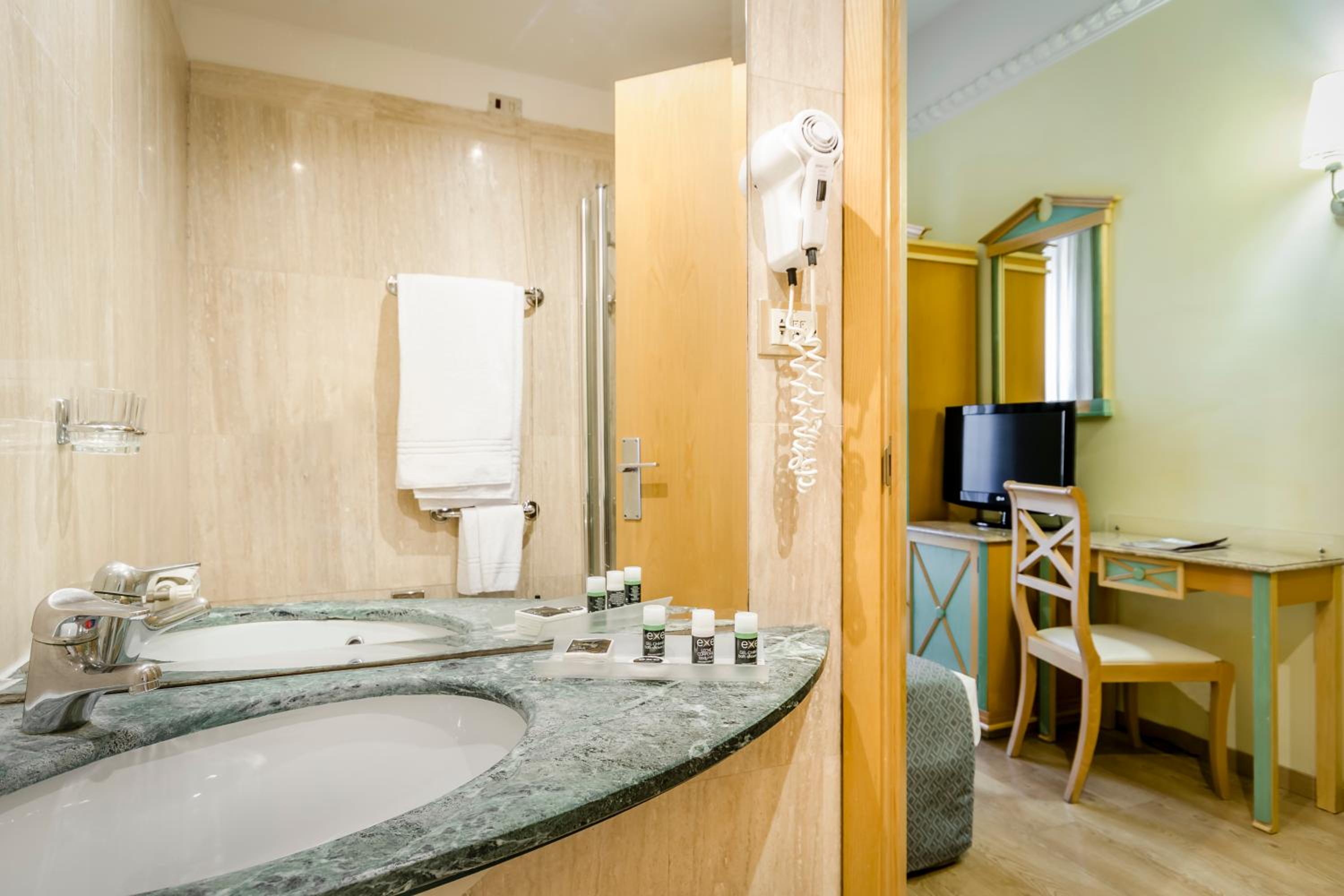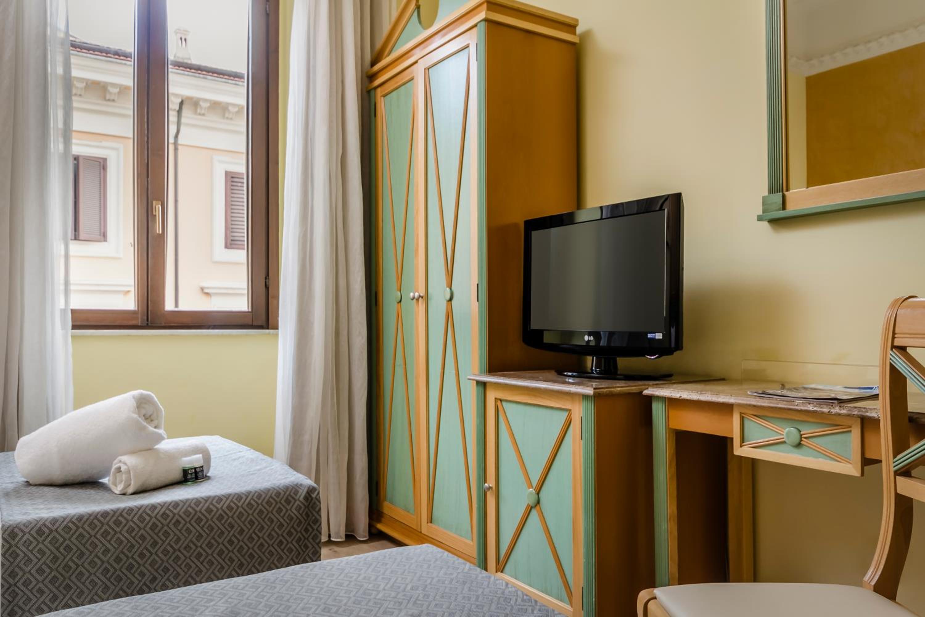 Hotel bardzo blisko głównego dworca Termini. Szybkie i łatwe dojście z autobusu Terravision. Blisko hotelu przystanki autobusowe, metro, restauracje, małe sklepiki i duży market. Sam hotel czysty, w miarę cichy, miły i pomocny personel. Śniadania smaczne, w miarę duży wybór, nie tylko po włosku na słodko ale również jajecznica, ser, wędliny, jogurty i inne rzeczy, tak, że każdy znajdzie coś dla siebie. Śniadania serwowane są na 6 piętrze, z widokiem na zabytki Rzymu zlokalizowane przy Placu Republiki. W hotelu dostępna winda. Możliwość przechowania bagażu w dniu wyjazdu bez ograniczeń czasowych. Miłym akcentem było, że hotel udostępnia bezpłatnie dla gości różne rzeczy, których zapomnieli, np. szczoteczkę do zębów, grzebień i inne drobne ale niezbędne przedmioty.