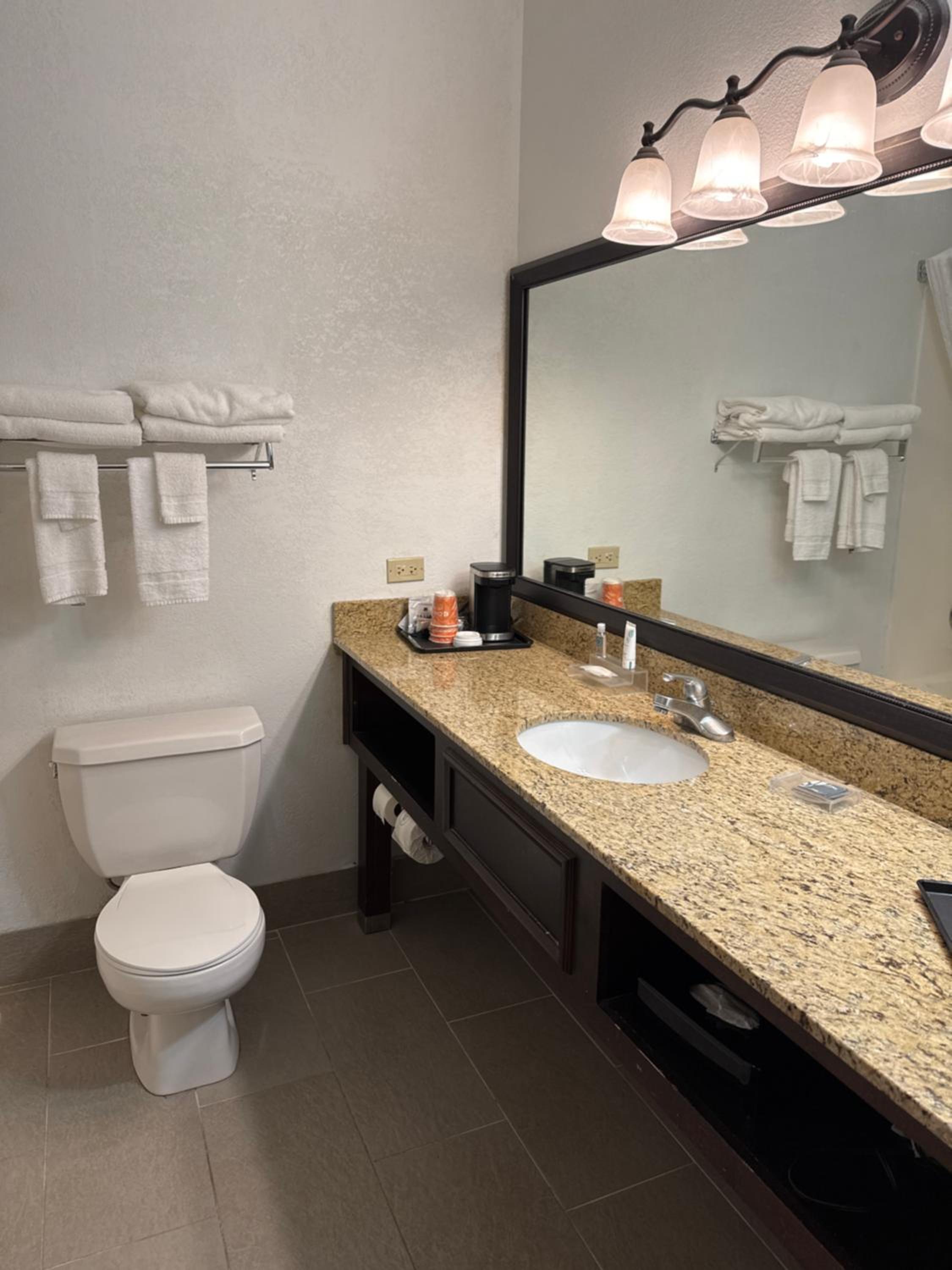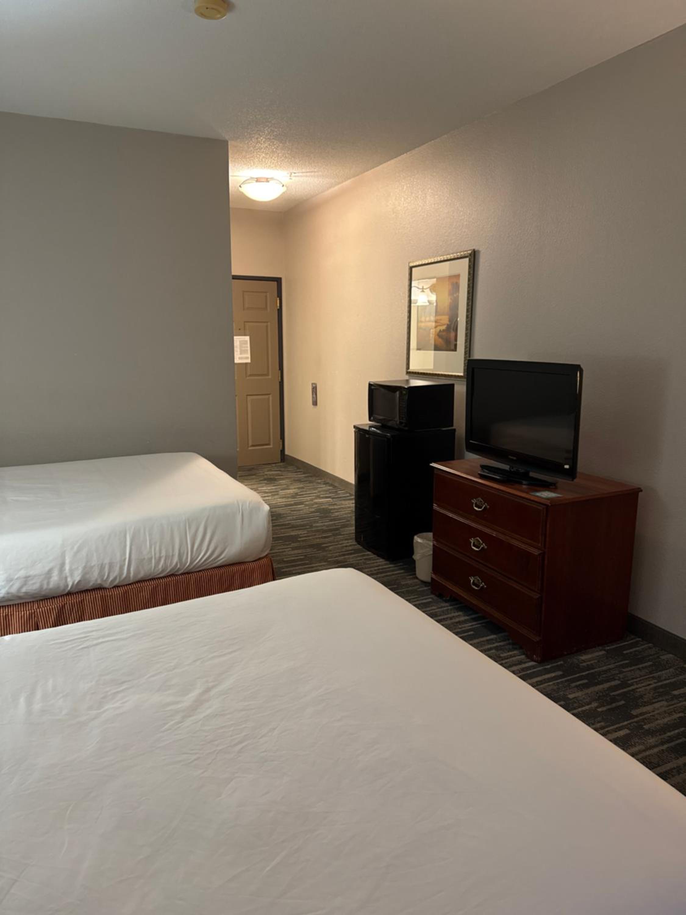 We had to request clean sheets for the sofa bed as the old sheets were still on the bed. The king bed in the suite was terribly uncomfortable. The room was not as clean as I would like and we didn't have enough towels, toilet tissue or pillows for our stay. The pool was closed for our stay. There was a sign on the desk stating that this was posted on-line, but I never saw it. Also, on Sunday, we woke up to the elevator being closed down and the area near the ice machine on the 2nd floor being retiled. There had been no mention of that, so we were quiet surprised. The area remained closed off for the entire day and overnight. We had to leave the property to get ice on Monday morning. Again, there was a sign posted that this was being done. But, that does nothing to prepare anyone. My husband recently underwent a total knee replacement, so for him to have to use the steps (we were on the 2nd floor) for everything got a little difficult. We had to carry our bags down rather than use a cart and the elevator.