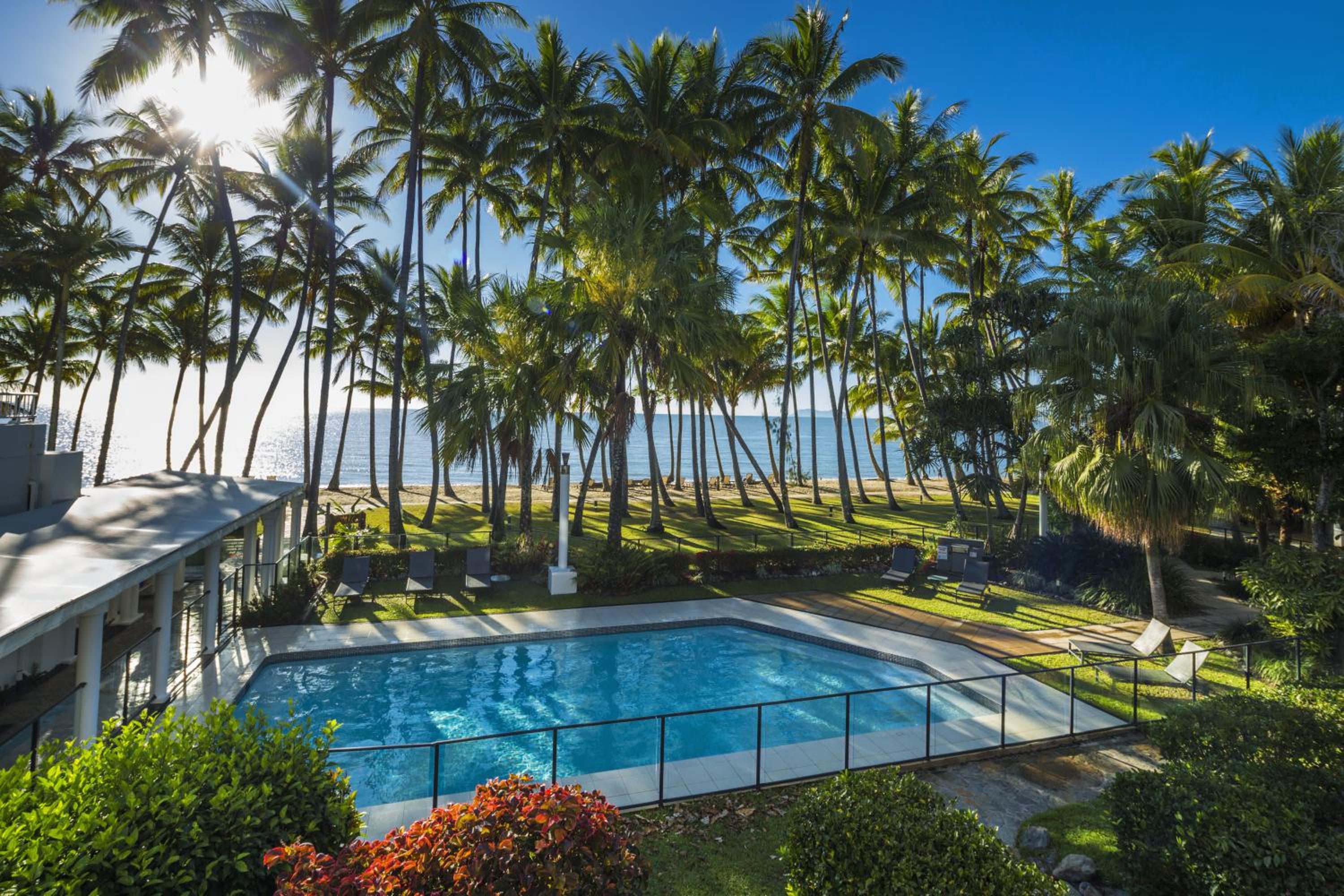 Overlooking the Coral Sea, Alamanda Palm Cove offers a stunning retreat with 3 swimming pools, a day spa, and a hot tub. Each apartment boasts a private balcony with mesmerizing ocean or pool views, ensuring a truly relaxing experience.