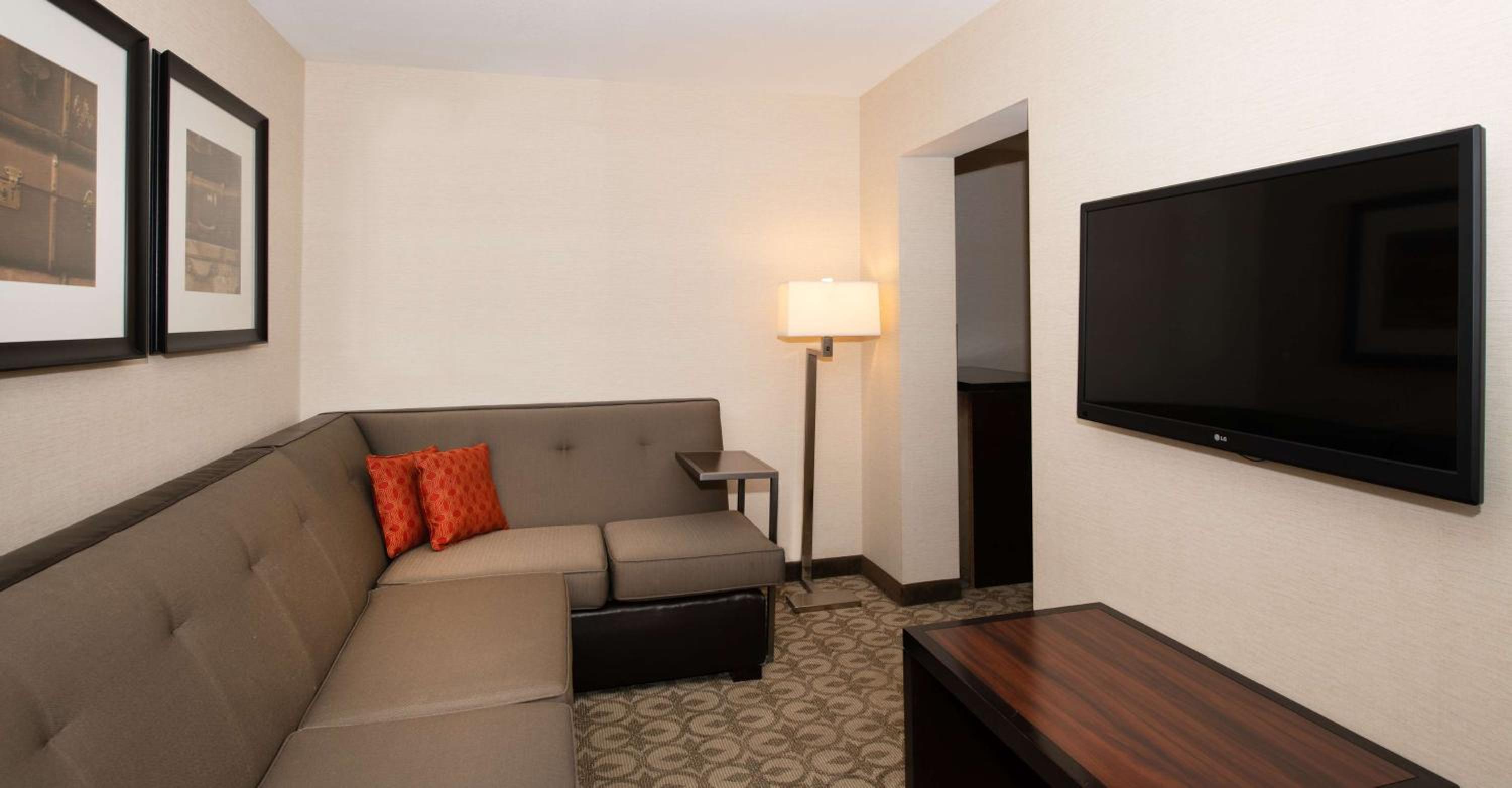 Each guest room is equipped with a 42-inch flat-screen TV, ergonomic work desk, and gourmet coffee facilities. Free Wi-Fi, a business center, and on-site laundry facilities cater to all guest needs.
