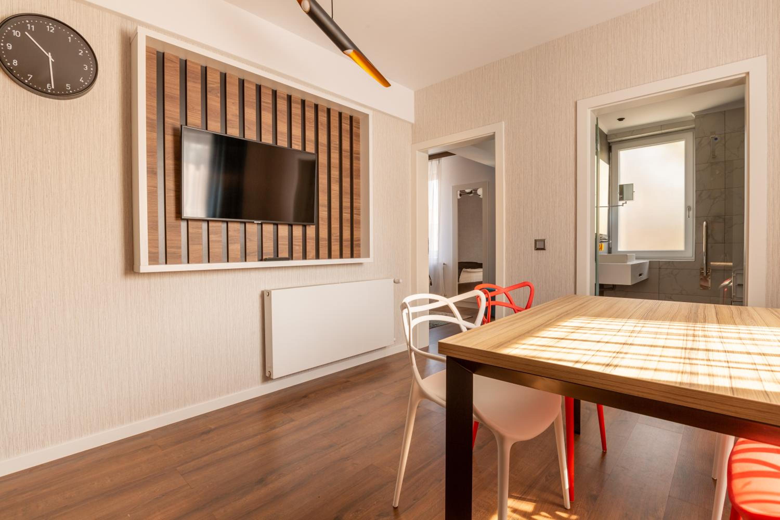 Modern Amenities: The units in the aparthotel are designed for comfort and convenience, featuring air conditioning, flat-screen TVs, and fully equipped kitchens. Guests can also make use of the safety deposit box, bathrobes, and slippers provided in each unit.
