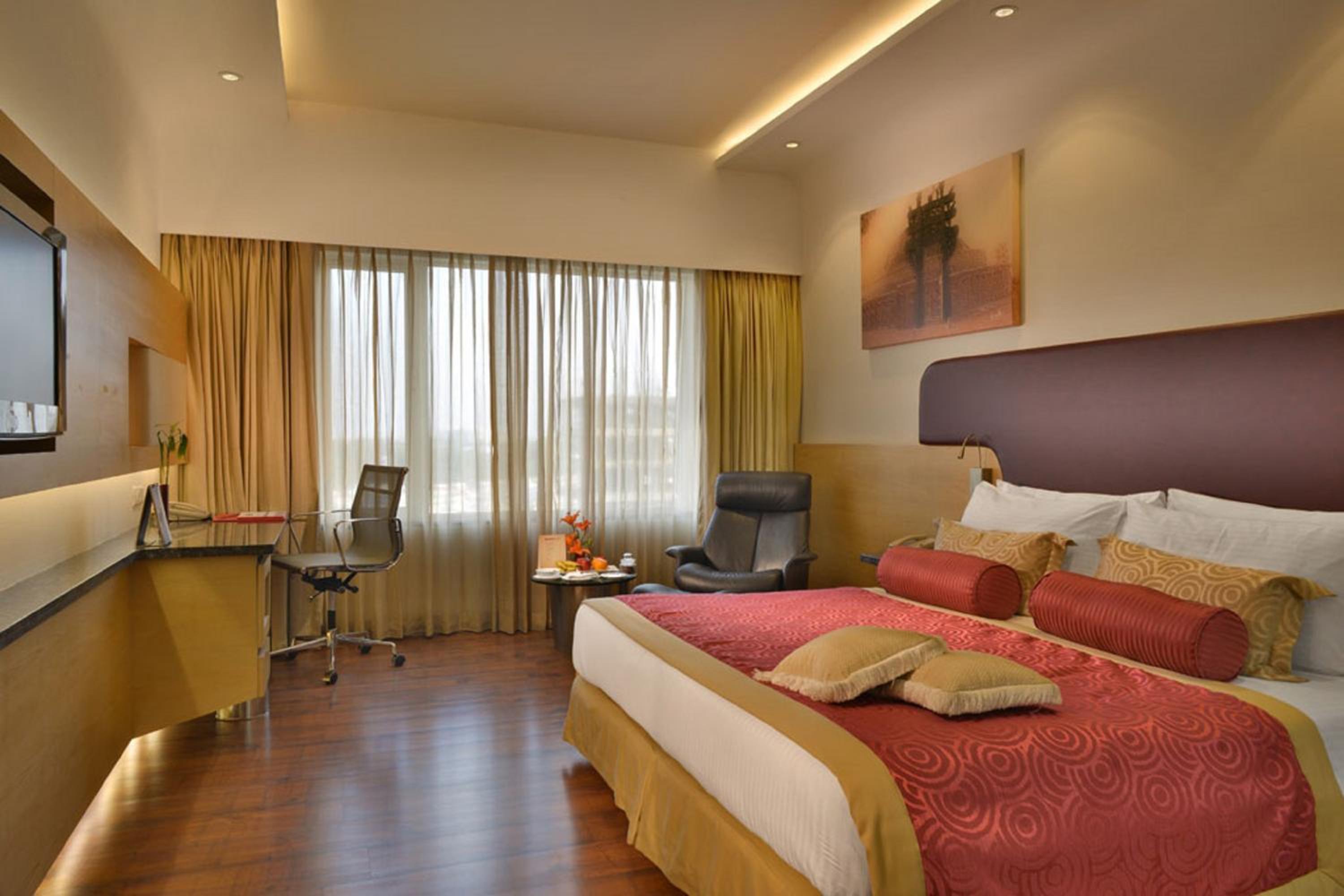 Vivanta Vadodara offers air-conditioned guest rooms with modern amenities and comfortable furnishings, ensuring a relaxing stay. The en suite bathrooms are stocked with complimentary toiletries for your convenience.