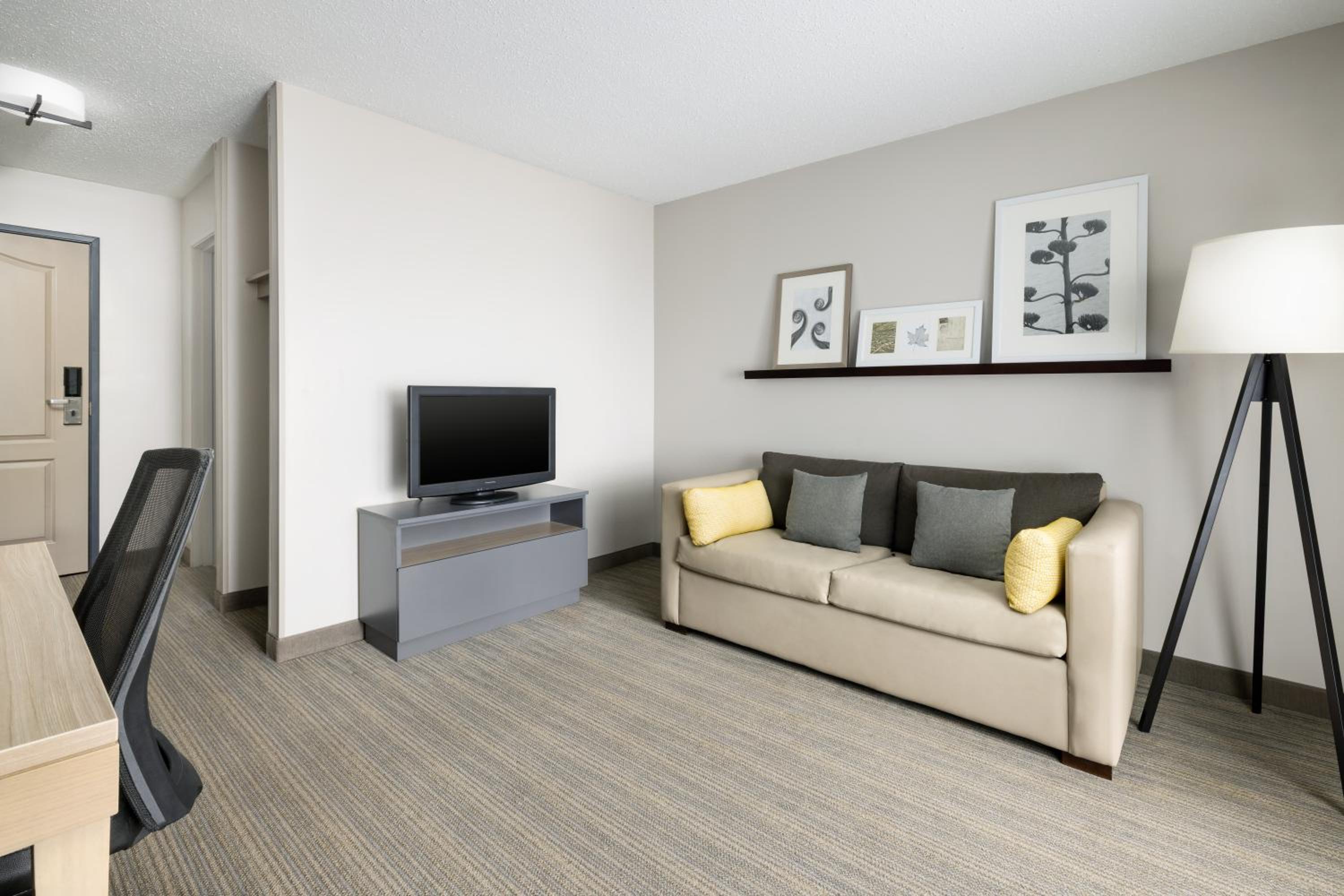 The room was clean and bed was comfortable. The breakfast was good with 24 hour coffee available in the kitchen and cookies by the front desk. The staff was friendly. Restaurants and stores near by.