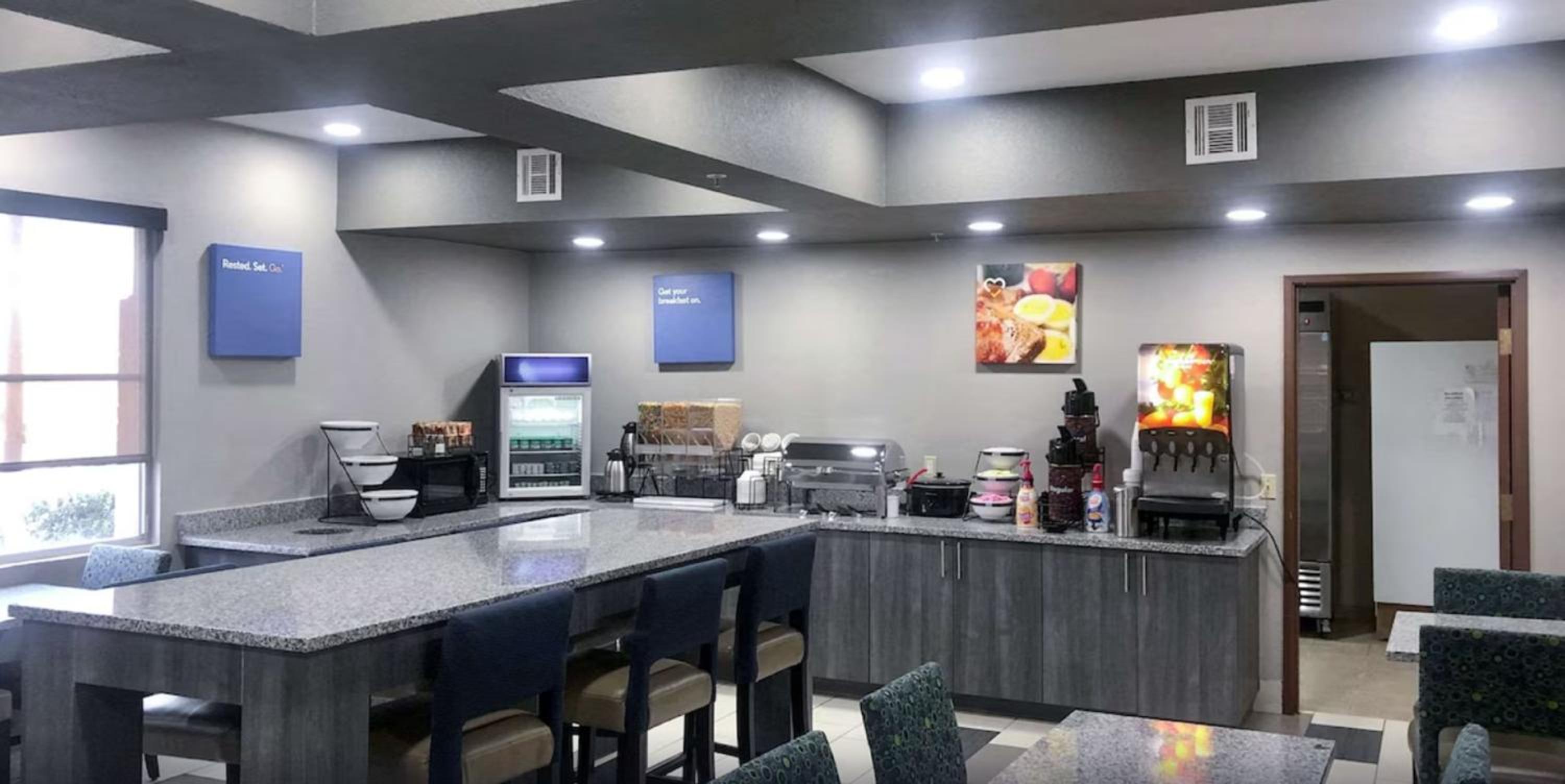 Guests can start their day with a complimentary breakfast featuring hot and cold items. The hotel is conveniently close to attractions like the Tulsa Zoo, Bailey Ranch Golf Club, and Tulsa Air and Space Museum.
