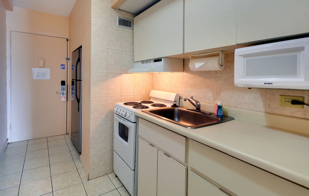 Kitchen cabinet drawer falling. Rooms need to be updated/painted. Should offer to use pool from other hotels.
