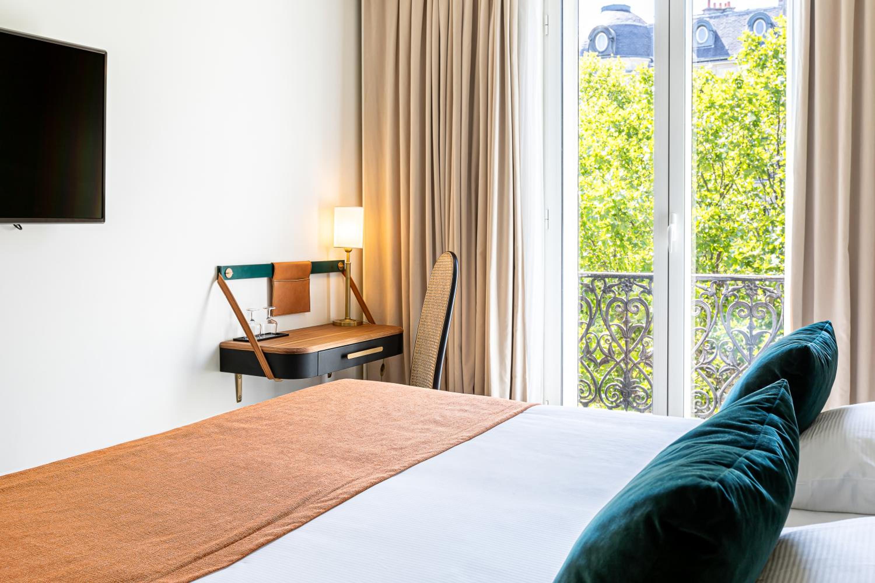 Experience the elegance of Hotel Le Friedland, just steps away from the iconic Champs-Elysées and the majestic Arc de Triomphe. Indulge in our stylish rooms adorned with exquisite printed fabrics, featuring modern amenities such as LCD TVs with satellite channels and select rooms with private balconies.