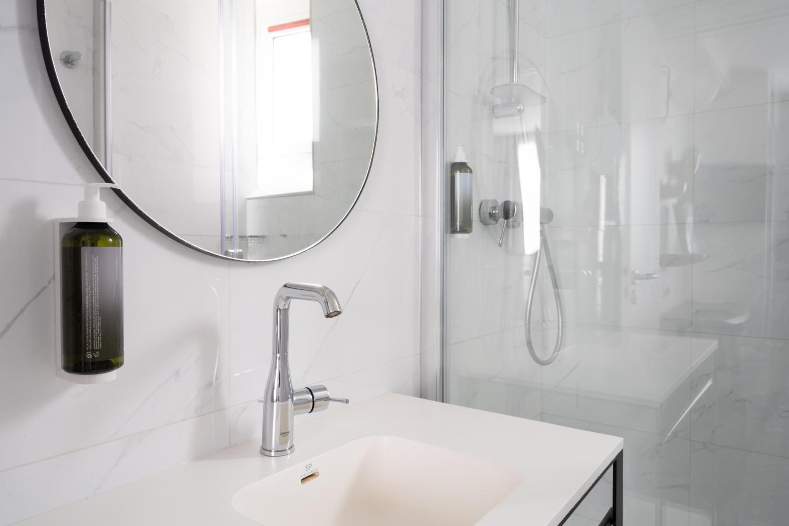 浴室很不錯明亮整潔、乾濕分離,有免費飲料可以喝,有電梯很方便,距離凱旋門三公里、老佛爺兩公里,不算遠