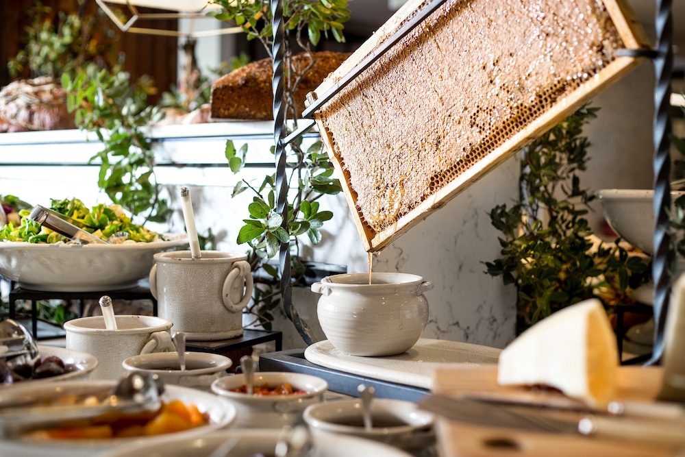 Beautiful property with gorgeous views of the Sea of Galilee, valleys and hills all the way to the Golan Heights. Milk, cheese served at breakfast are from the hotel’s farm, as are organically grown vegetables and herbs served to the guests.