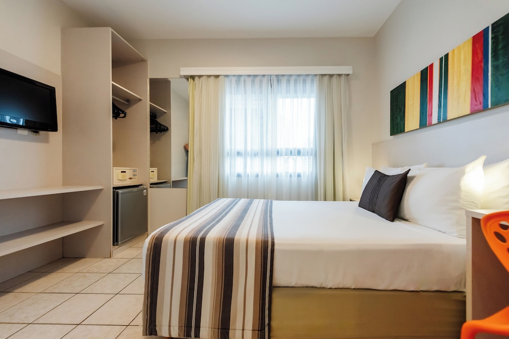 Bom custo benefício. Localização excelente. Quarto e cama confortáveis. Deixou a desejar na limpeza. No banheiro pia entupida com toalha velha e rasgada no check-in. Bom café da manhã, porém cobram 8,00 pelo café expresso no buffet de café da manhã que é incluso na diária. Absurdo
