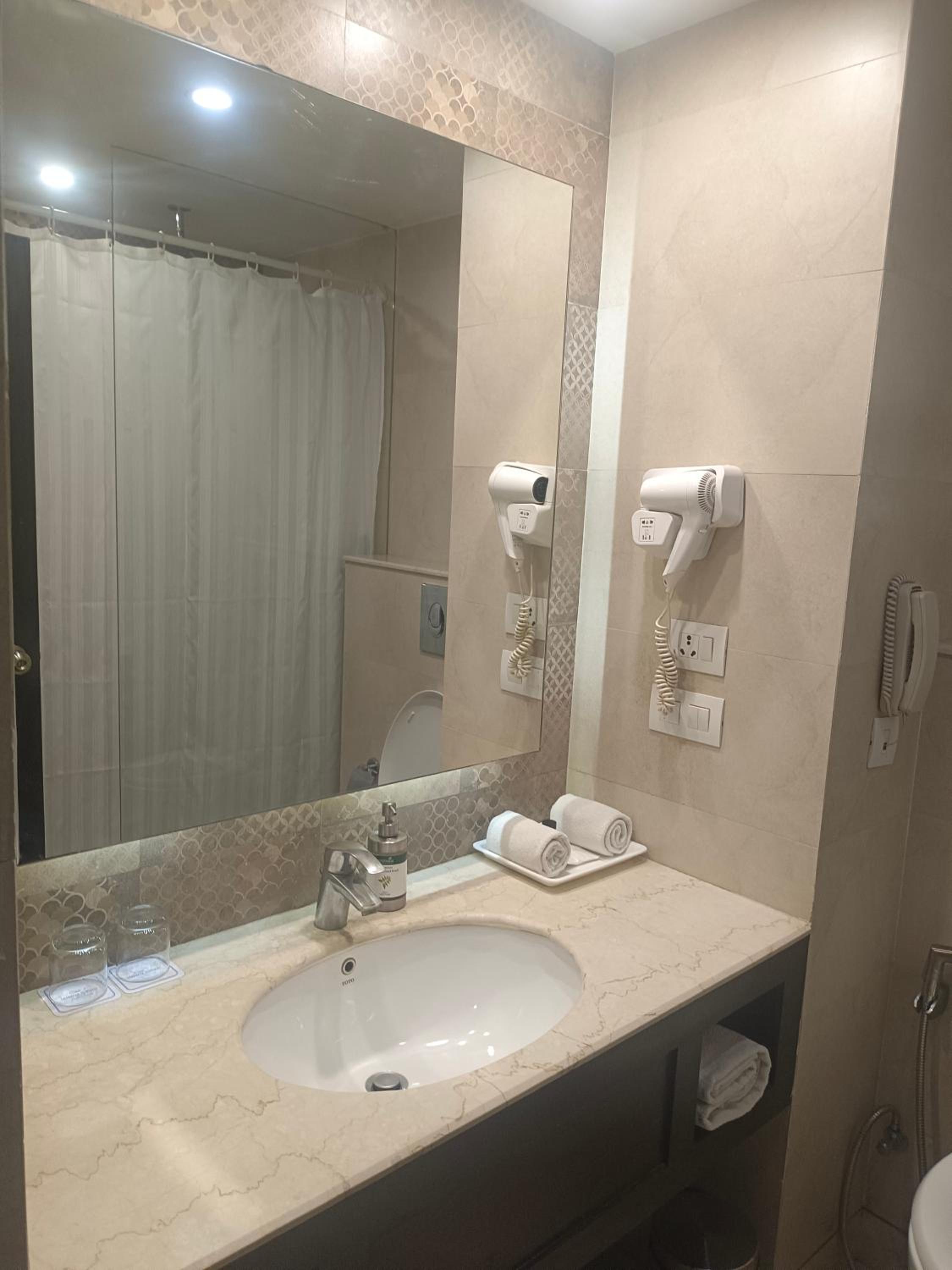 Modern Amenities: La Place Sarovar Portico offers air-conditioned rooms with flat-screen TVs, minibars, and private bathrooms with slippers and hair dryers. Enjoy free WiFi throughout the property.