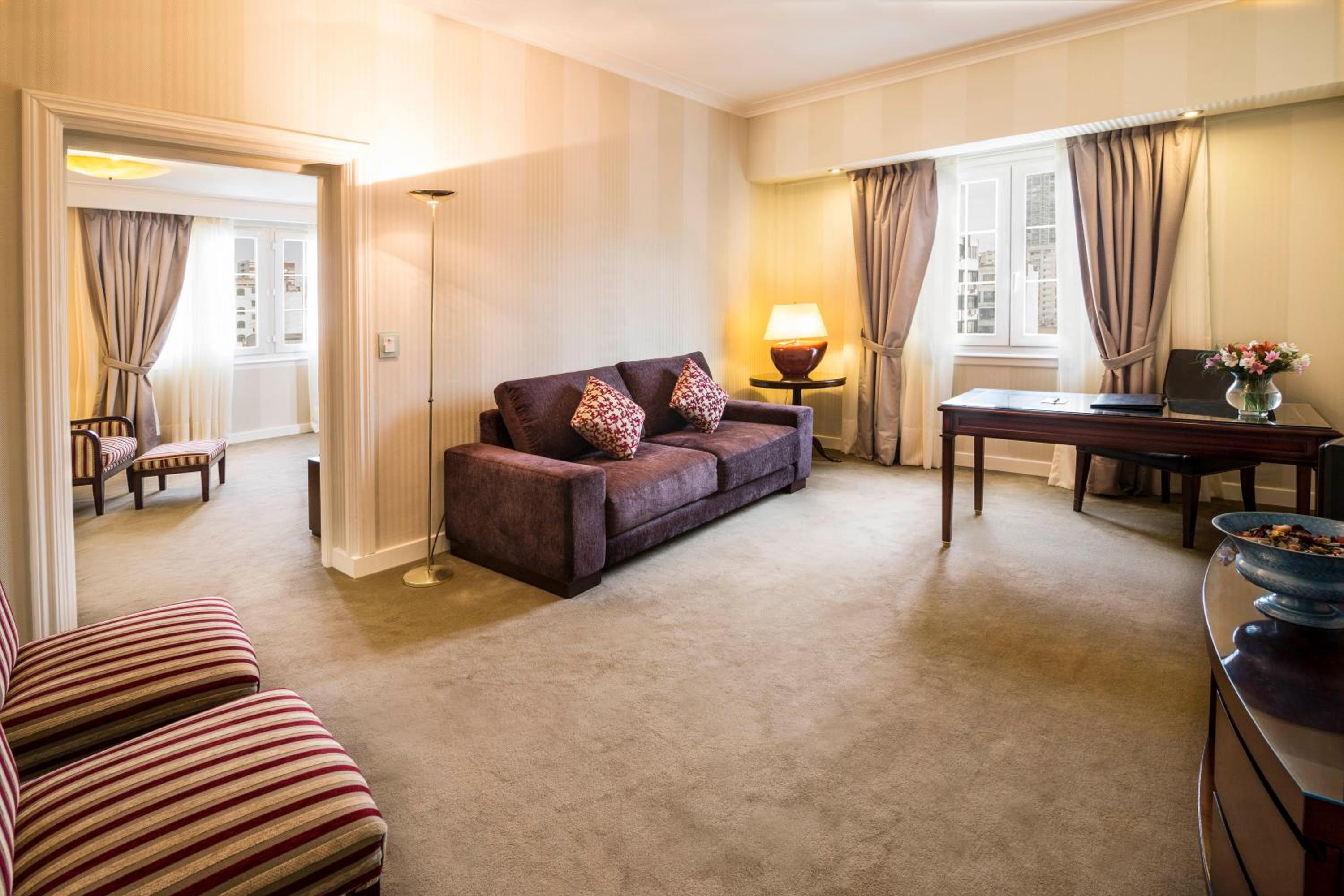 Relax in the stylish rooms featuring classical interiors, large French windows, and modern amenities like air conditioning, flat-screen cable TV, and free Wi-Fi. Enjoy a 24-hour room service and a breakfast buffet with delectable pastries and seasonal fruits.