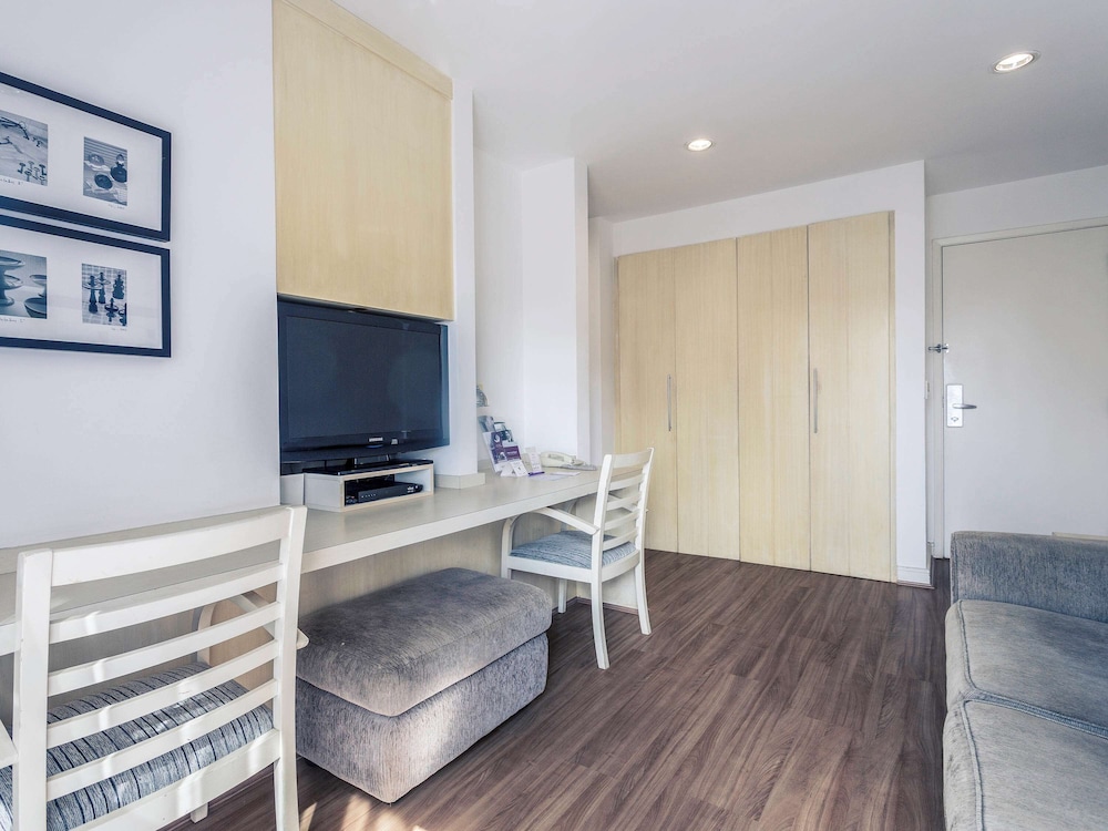O pior hotel da minha vida. Foi a primeira vez, em 35 anos de profissão que troco de hotel no meio da hospedagem. Não parece ser um hotel, mas sim um flat que tem moradores e quartos para locação. Não entendo como pode usar a marca Mercure. Fiz uma reserva de três diárias, mas só fiquei uma. O ar condicionado não funciona e fazia um barulho horrível. Pedi para trocar de quarto, mesmo que para uma categoria inferior, mas não consegui.