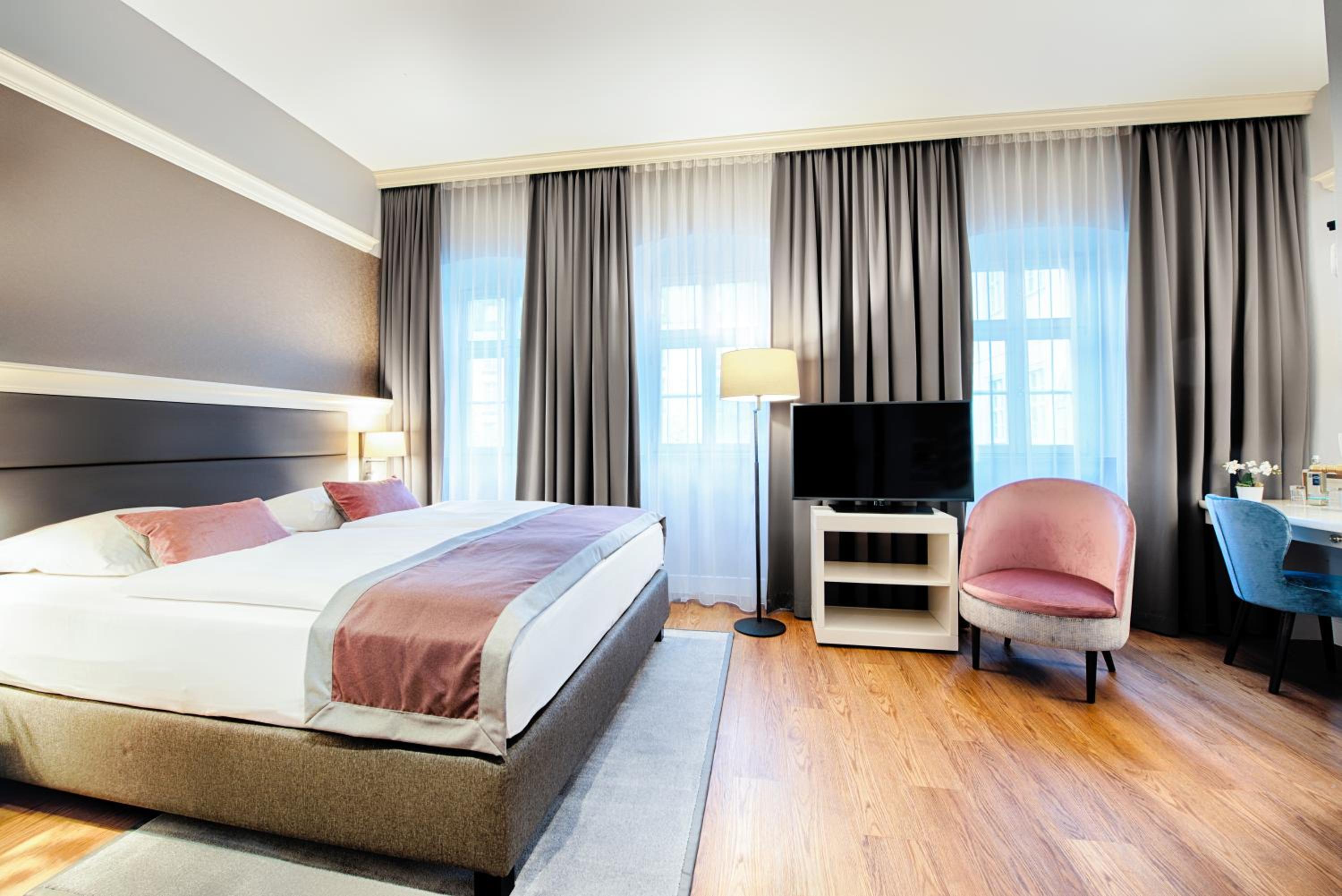 The Welcome Hotel Residenzschloss Bamberg offers spacious rooms ranging from 18-25 m² in size, each equipped with a flat-screen TV for your entertainment.