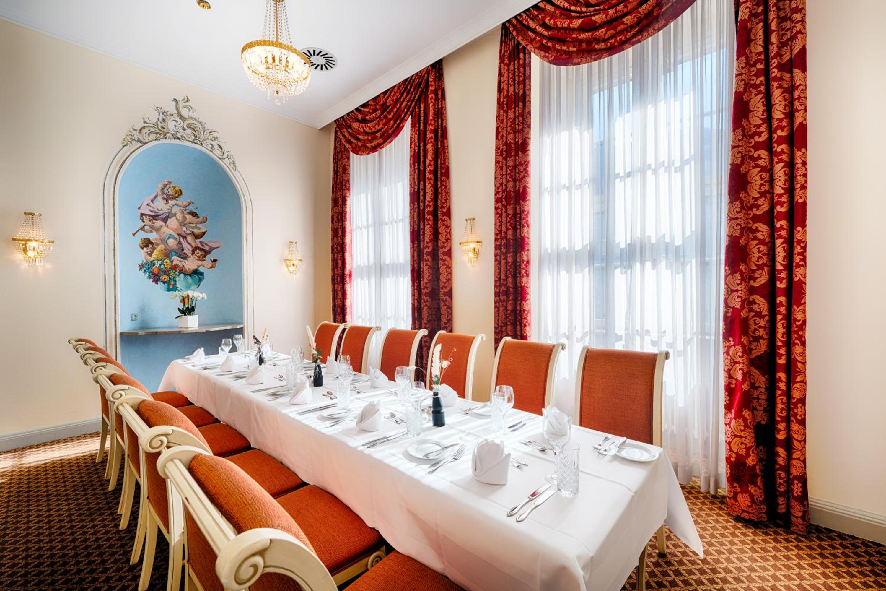 Indulge in a rich breakfast buffet at the Orangerie restaurant every morning, and savor light cuisine throughout the day. Treat yourself to cakes and aromatic coffee at the Residenzschloss's café or on the terrace.