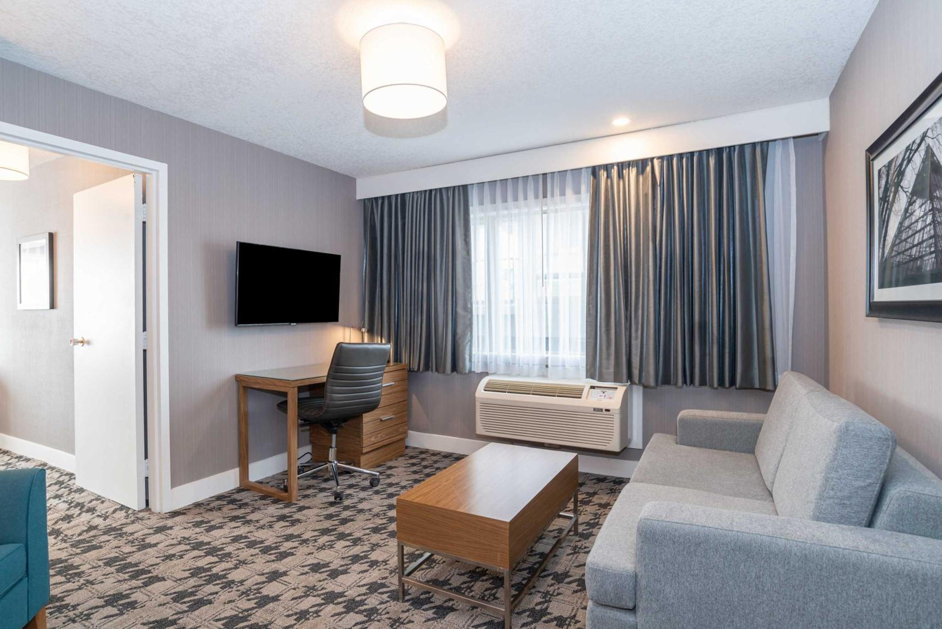 It was very noisy due to the industrial area beside the hotel. The first suite we were in had a very loud constant noise from the fans on the Seafood plant next to the hotel. It was unbearable!! We asked to be moved and the noise level was better but still noisy. I will not stay there again.