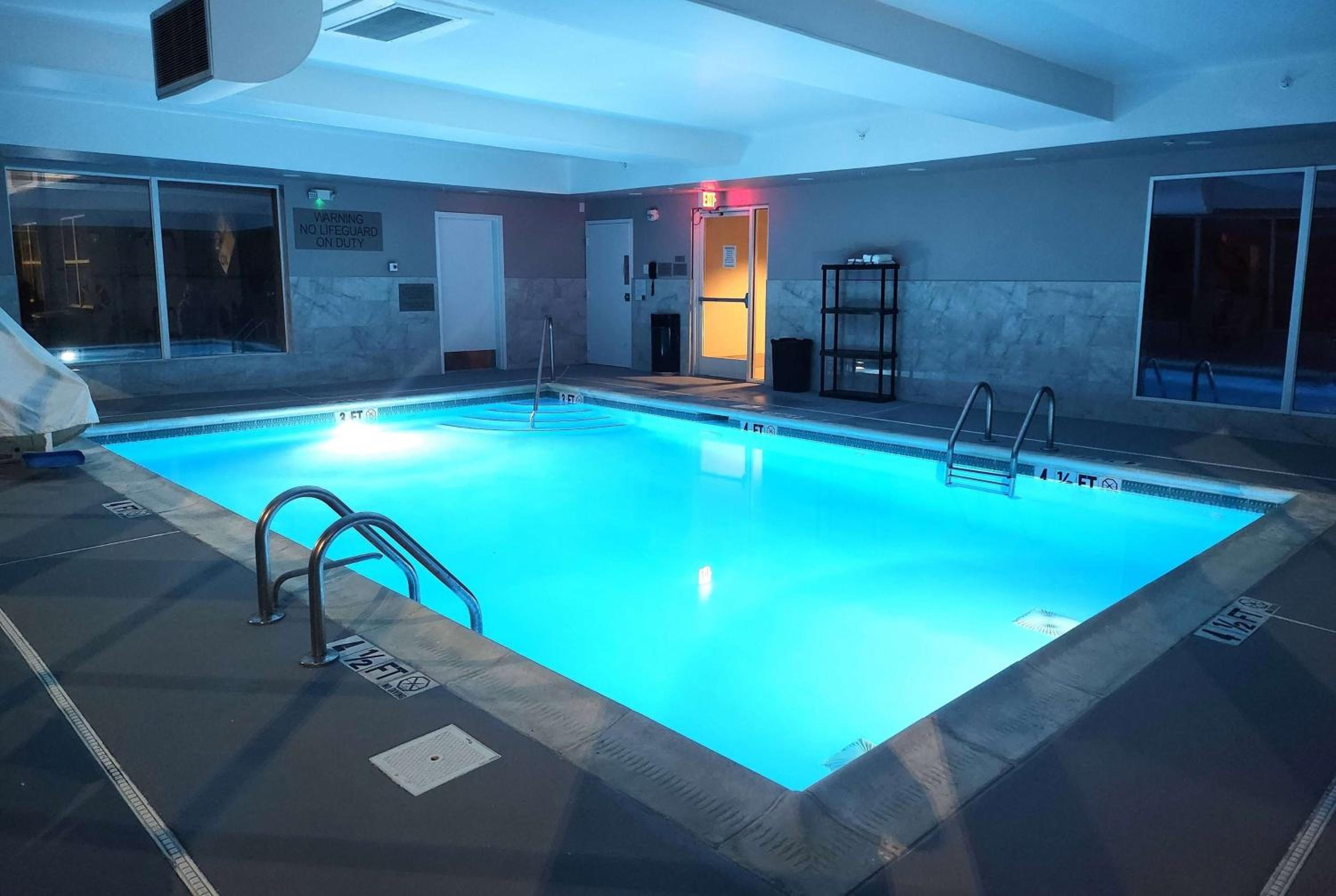 Unwind by the indoor pool or stay active in the fitness center. Enjoy the convenience of in-room cable TV, refrigerator, and microwave.