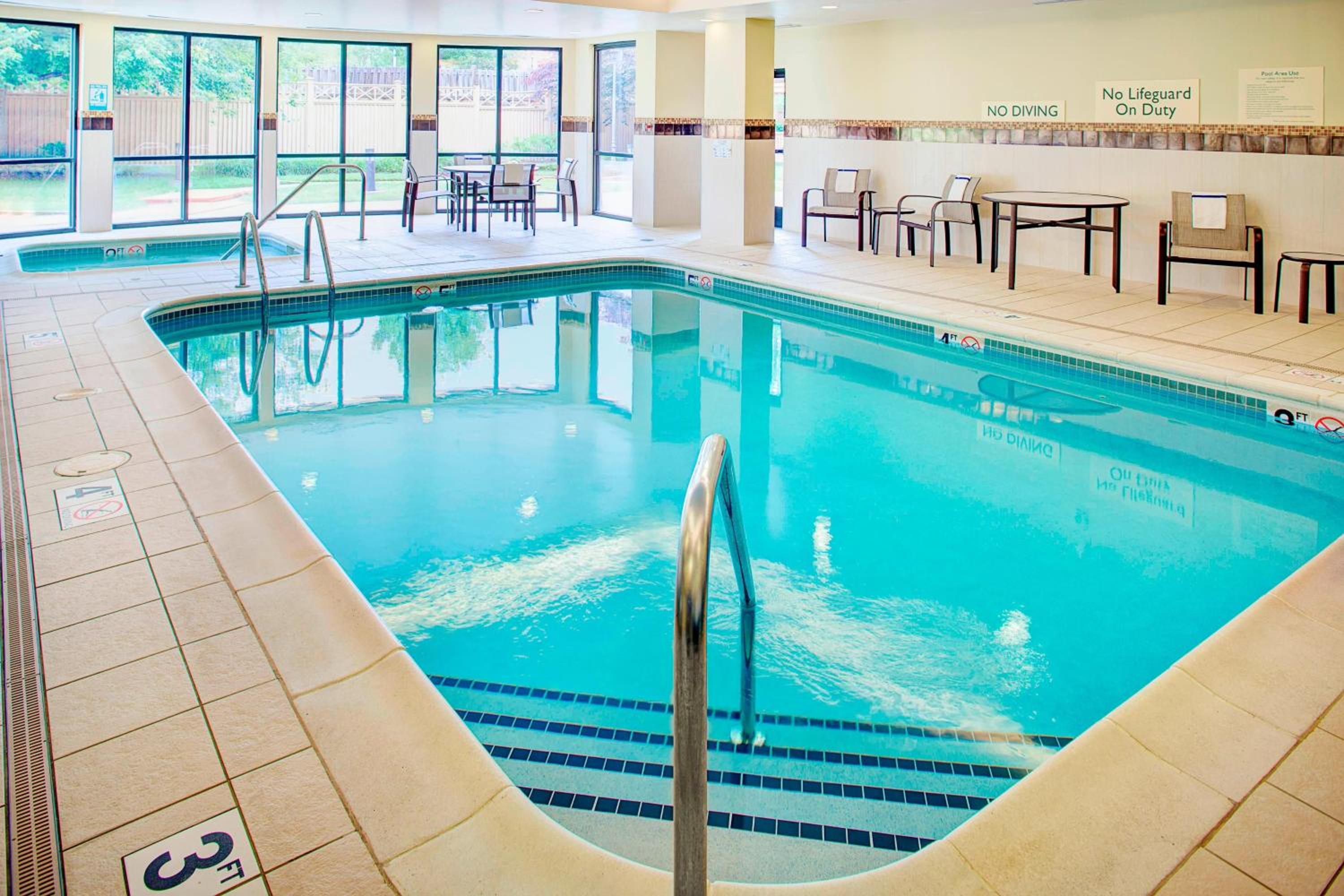 Dining and Leisure Options: Start your day with a delicious breakfast at the Courtyard Bistro, offering fresh Starbucks coffee. Indulge in American cuisine and cocktails for dinner. Unwind in the stylish lobby or take a dip in the indoor pool with a hot tub.