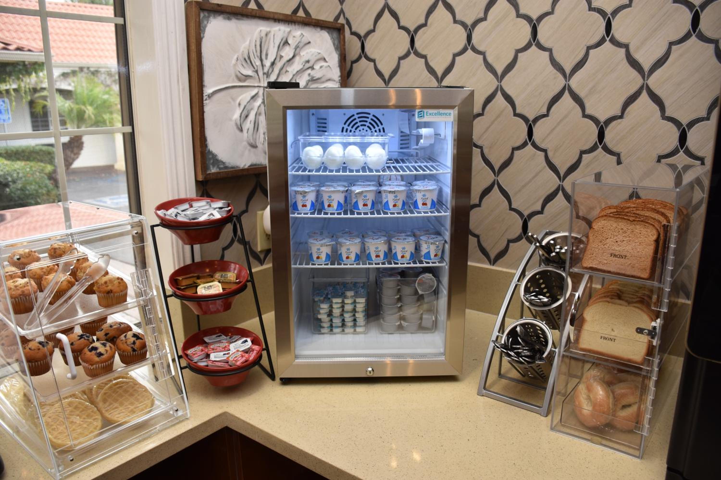 We are big on breakfast and this one was lacking a bit. There were the essentials like yogurt, eggs, etc. The juice was very concentrated but easily watered down to one's liking. The coffee station could have included hot chocolate, as there was a hot water dispenser. The cereal assortment was lacking and the bagels were tiny, nothing to write home about. We ended up going out to breakfast on morning #2 to have a better assortment.