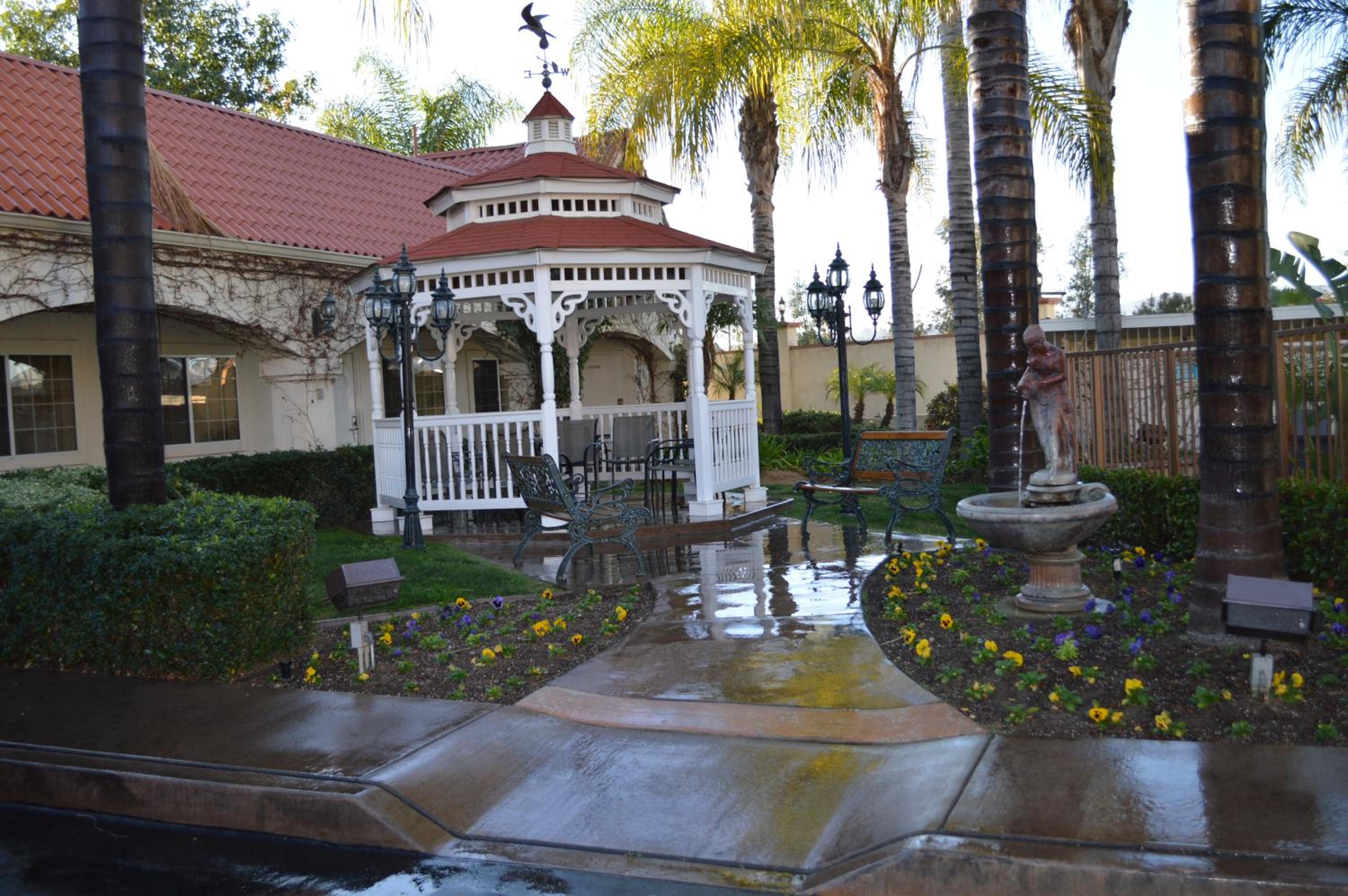 Tranquil Gazebo: Unwind in our cozy Gazebo, perfect for enjoying a morning coffee or evening drink. Take in the peaceful surroundings and savor the moments of relaxation during your stay at Dynasty Suites Redlands.
