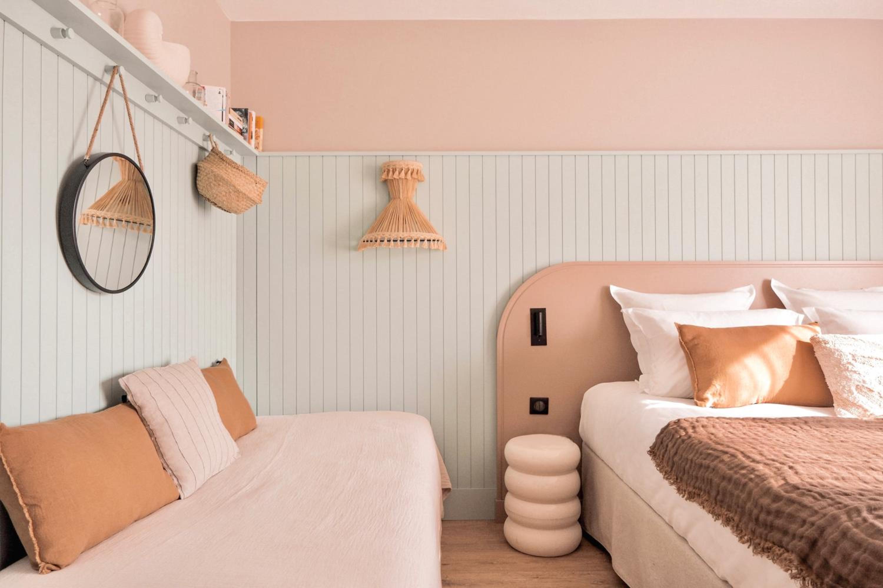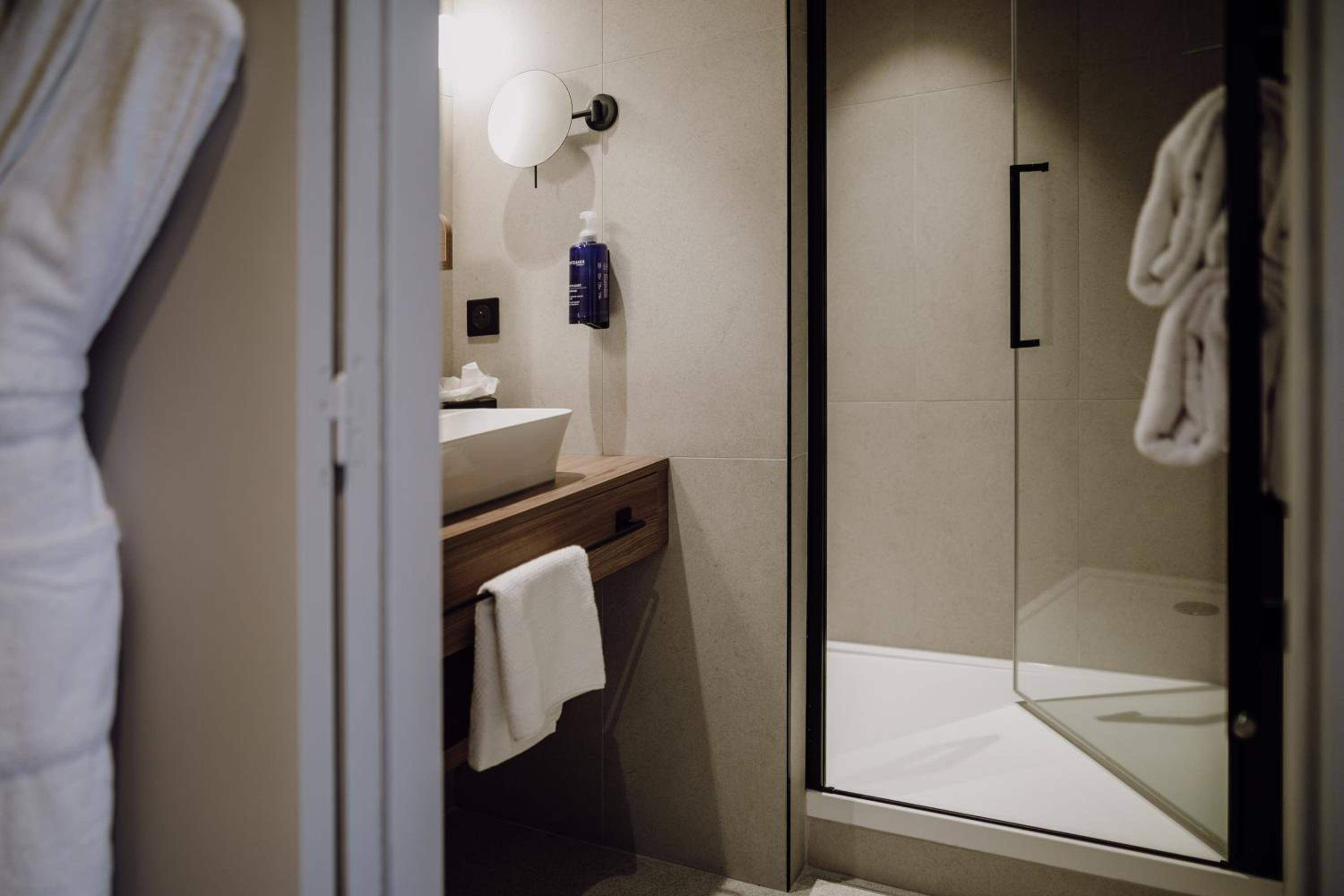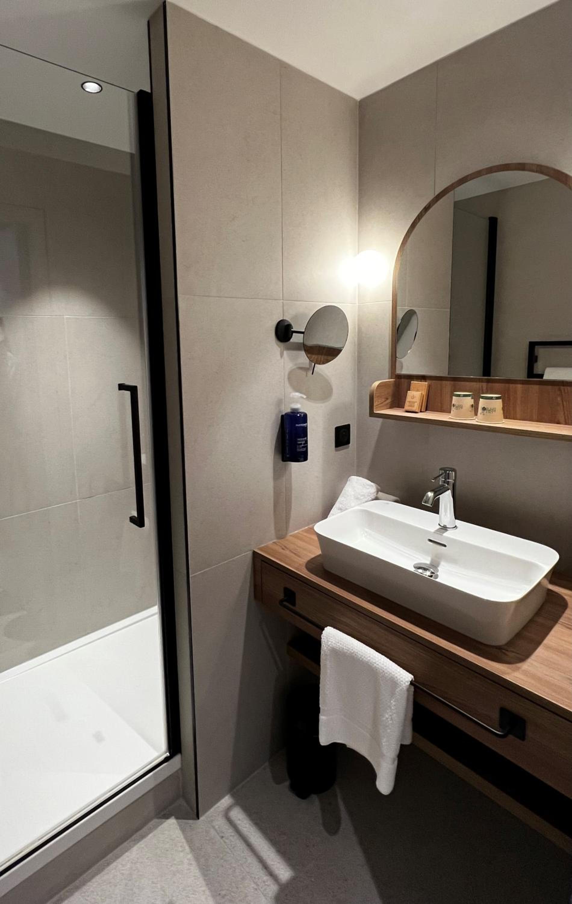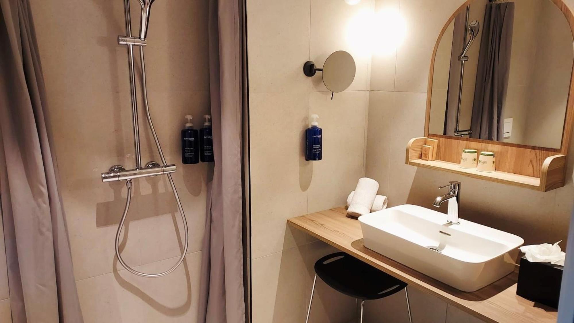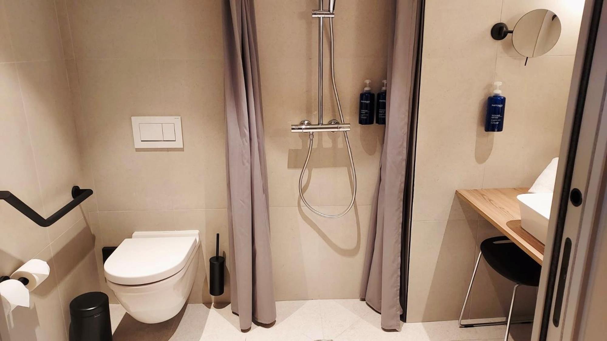 La chambre PMR n’est pas très pratique. La douche est située au milieu de la salle de bain avec un simple rideau qui ne sert quasiment à rien, ce qui fait que l’eau se retrouve partout dans la pièce après chaque utilisation. De plus, les draps n’étaient vraiment pas confortables : très rêches, ce qui est assez décevant pour un hôtel 4 étoiles où l’on s’attend à une literie de meilleure qualité.