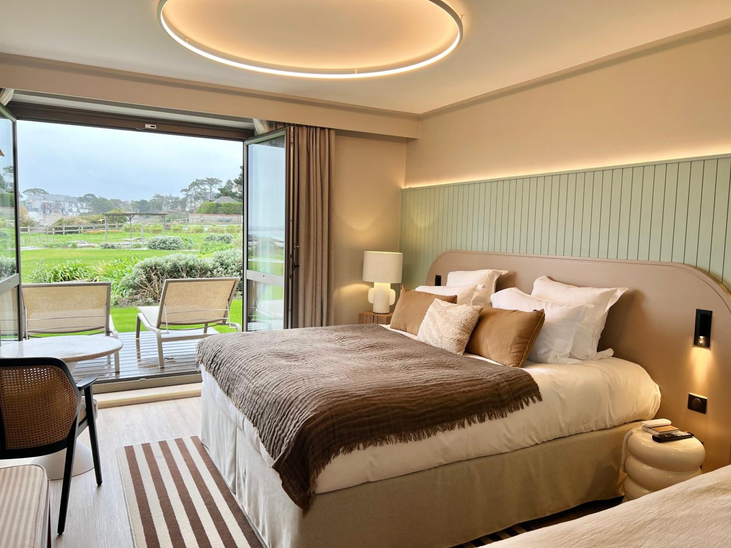 La vue et l emplacement idéal proche de Dinard, qui permet de belles balades, la salle de sport et le hall de l hôtel magnifique, literie de qualité, calme des chambres, le petit déjeuner en chambre sans supplément