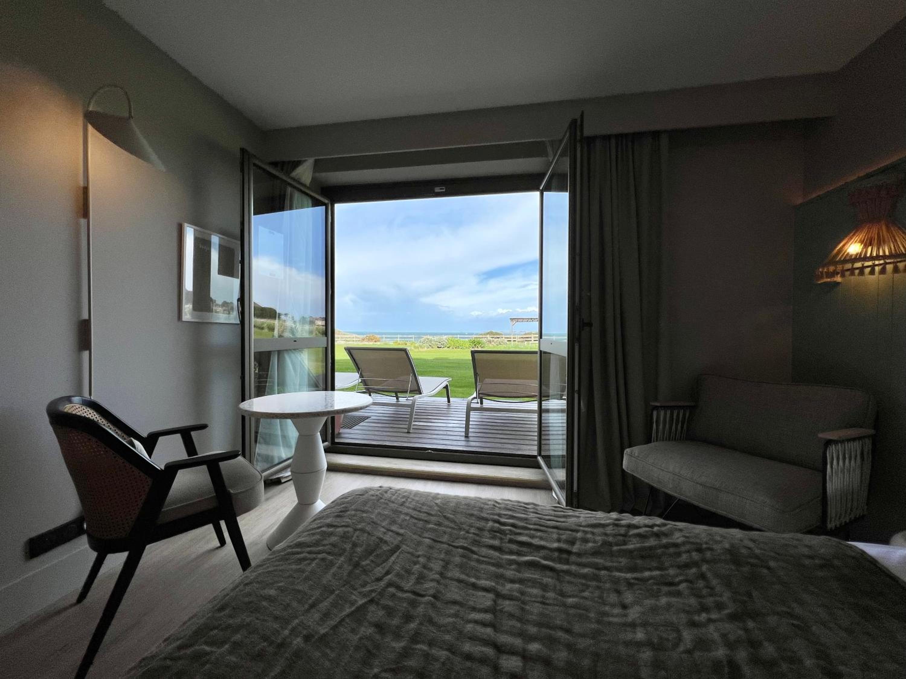 On a tout apprécié : un accueil chaleureux et bienveillant de tout le personnel qui se souciait en permanence de notre bien être, une décoration très plaisante, sobre tout en étant recherchée, le restaurant excellent avec un personnel très compétent et investi dans son travail, les petits jeunes du restaurant m’ont impressionné par leur professionnalisme, le petit déjeuner était absolument parfait mais c’est surtout les dîners qui m’ont vraiment épatés par la variété des menus différents chaque soir, les piscines à l’eau de mer chauffées y compris à l'extérieur, la vue magnifique, la facilité d’accès au sentier du littoral et enfin l’accueil de mon chien avec gamelle et couchage dans une chambre ouverte sur la verdure