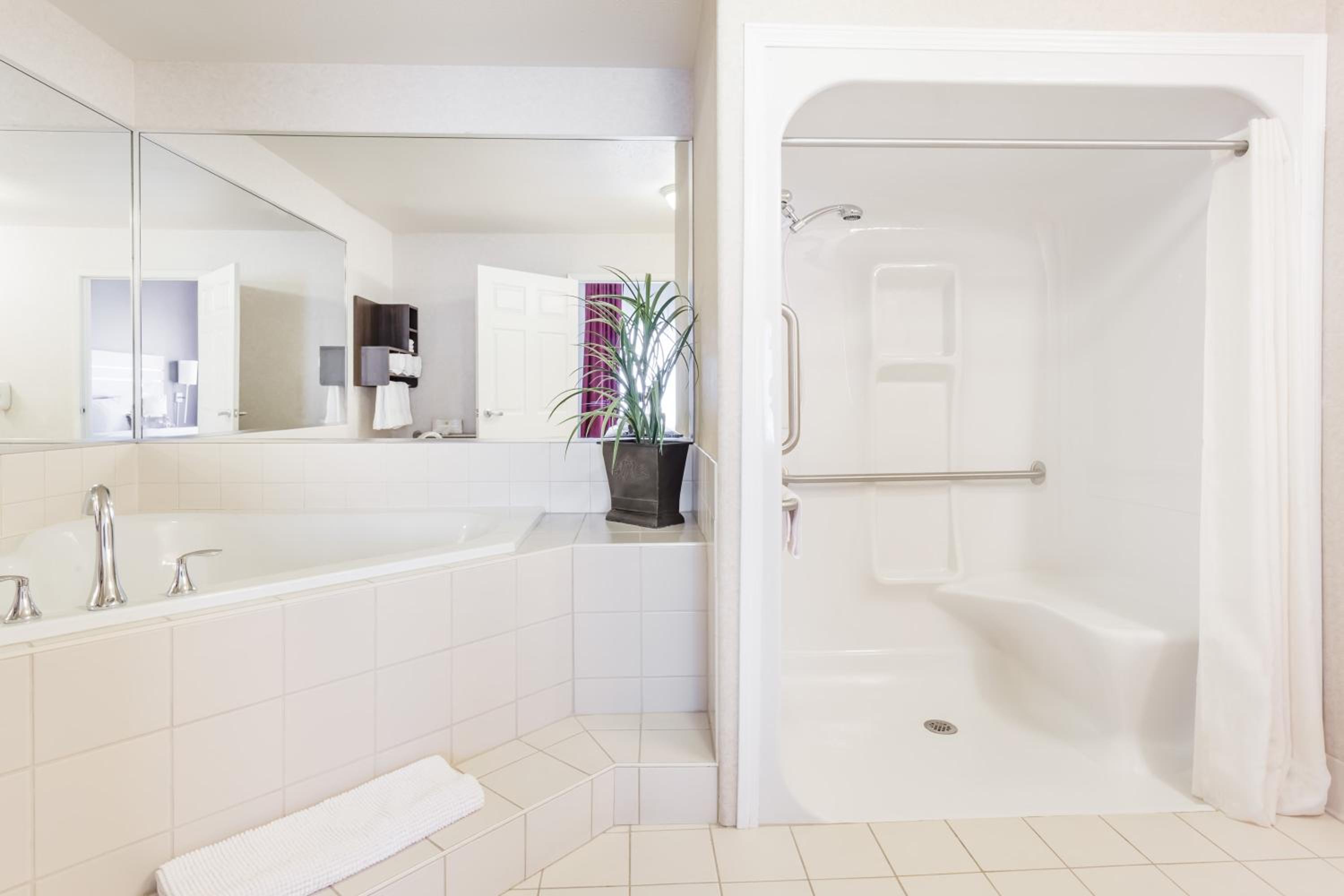 The foyer is spacious as well as the breakfast area. The room as well is spacious. Bed is comfortable. I needed an extra pillow and Anastacia made sure I was able to get additional one before we came back from our trip. The pool was decent in size but the slide was great.