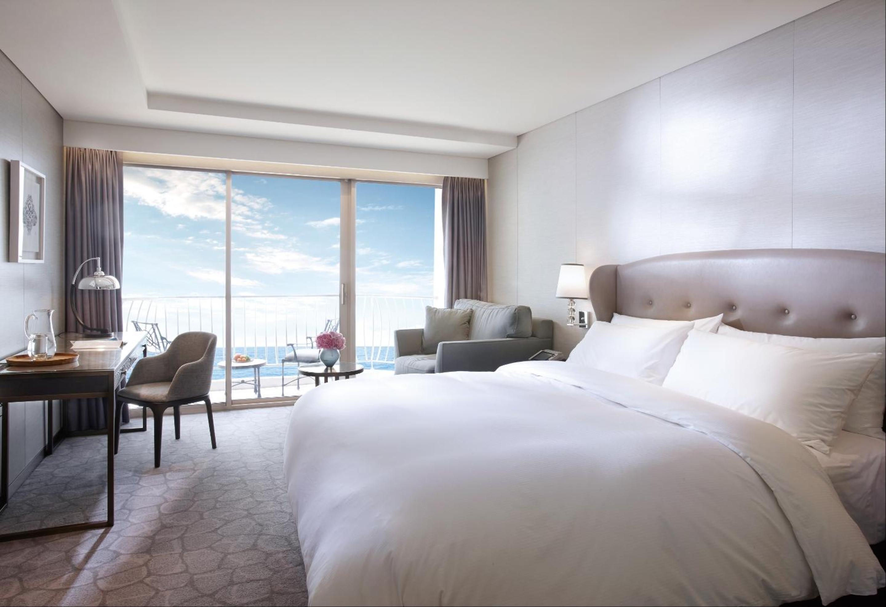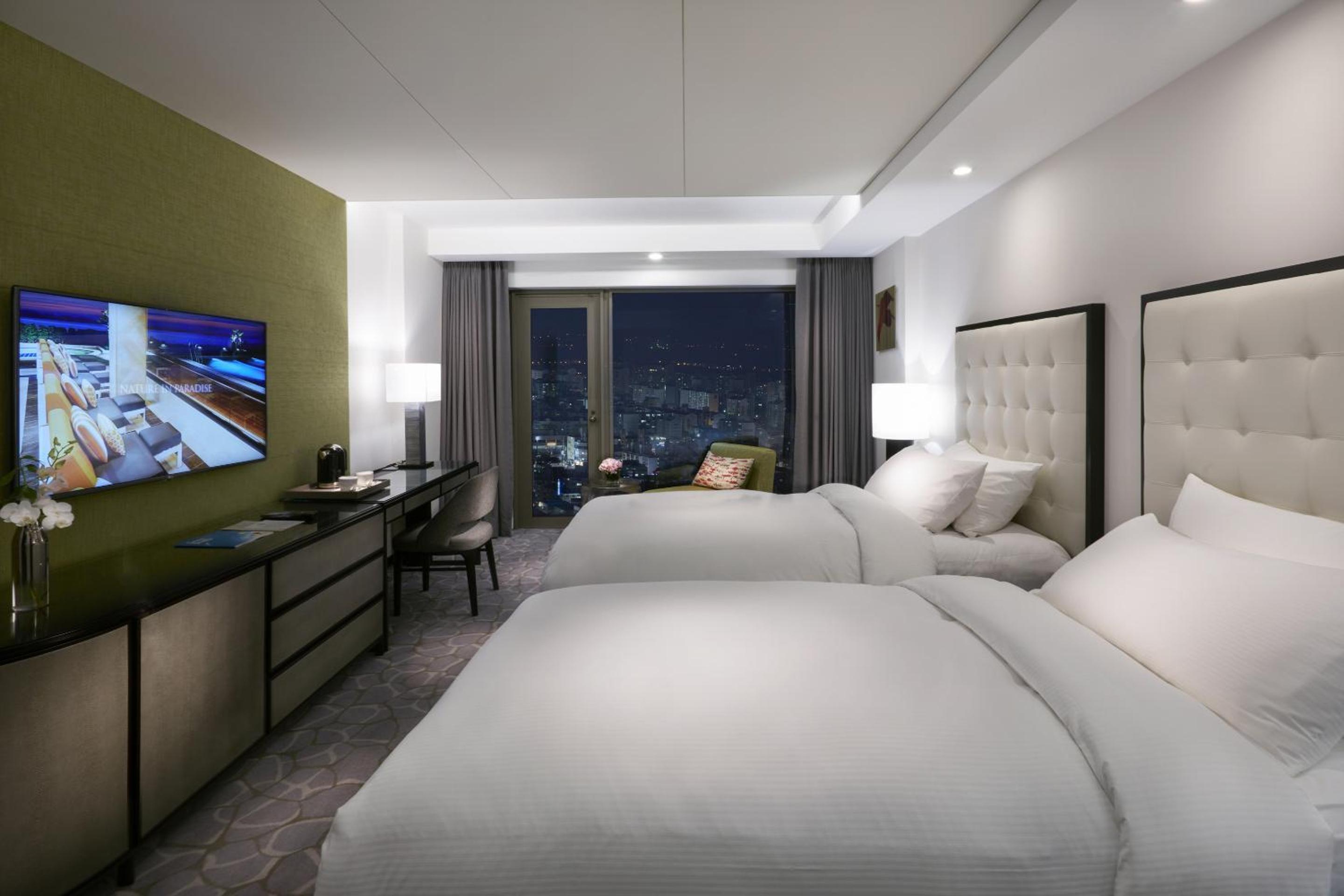 The Paradise Hotel Busan offers modern rooms with private bathrooms featuring aroma bath salts. Guests can enjoy the flat-screen cable TV, balconies with sea views, and complimentary bottled water.