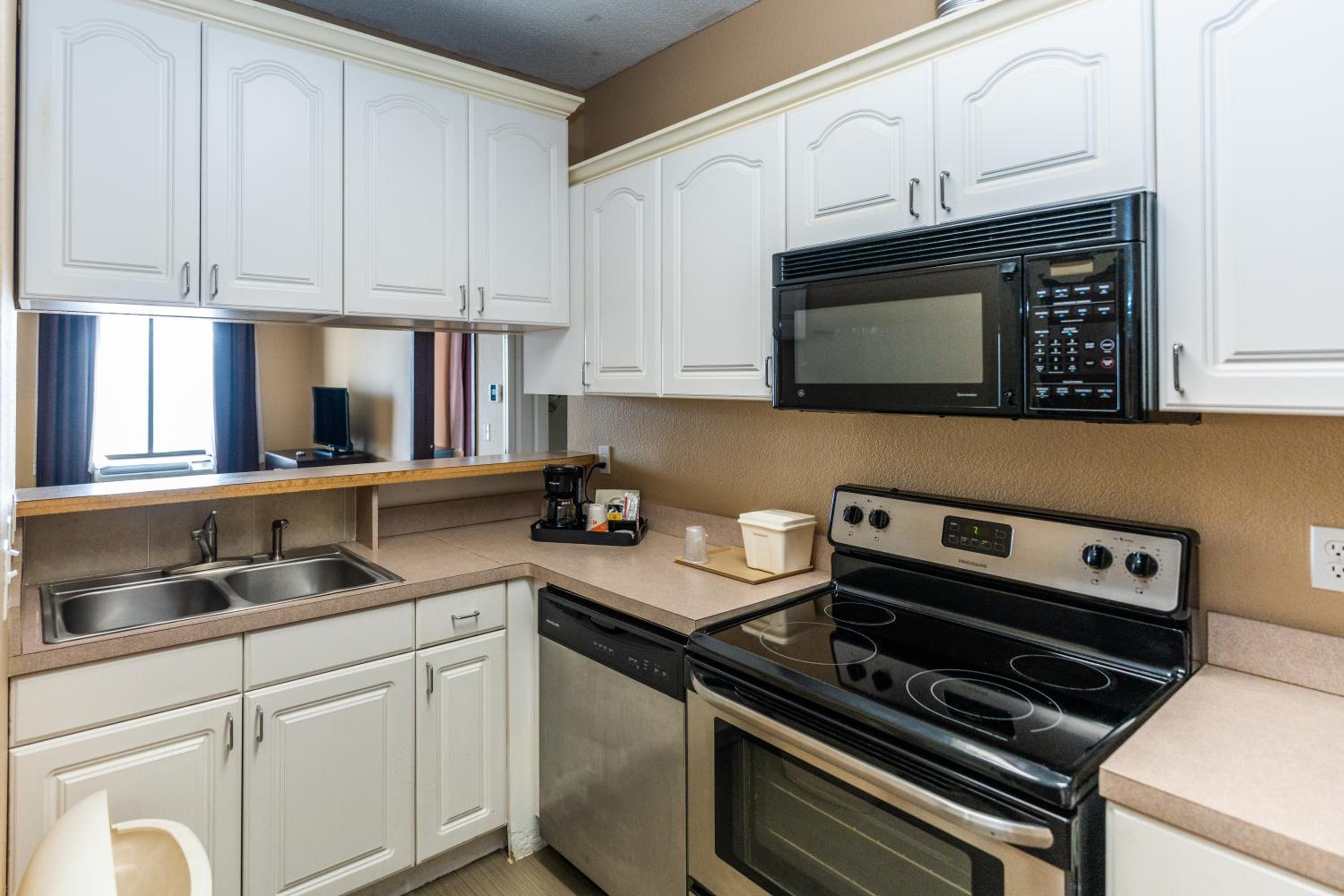 Enjoy spacious accommodations equipped with modern amenities like refrigerators, microwaves, and whirlpool bathtubs in select suites, ensuring a relaxing stay for all guests.