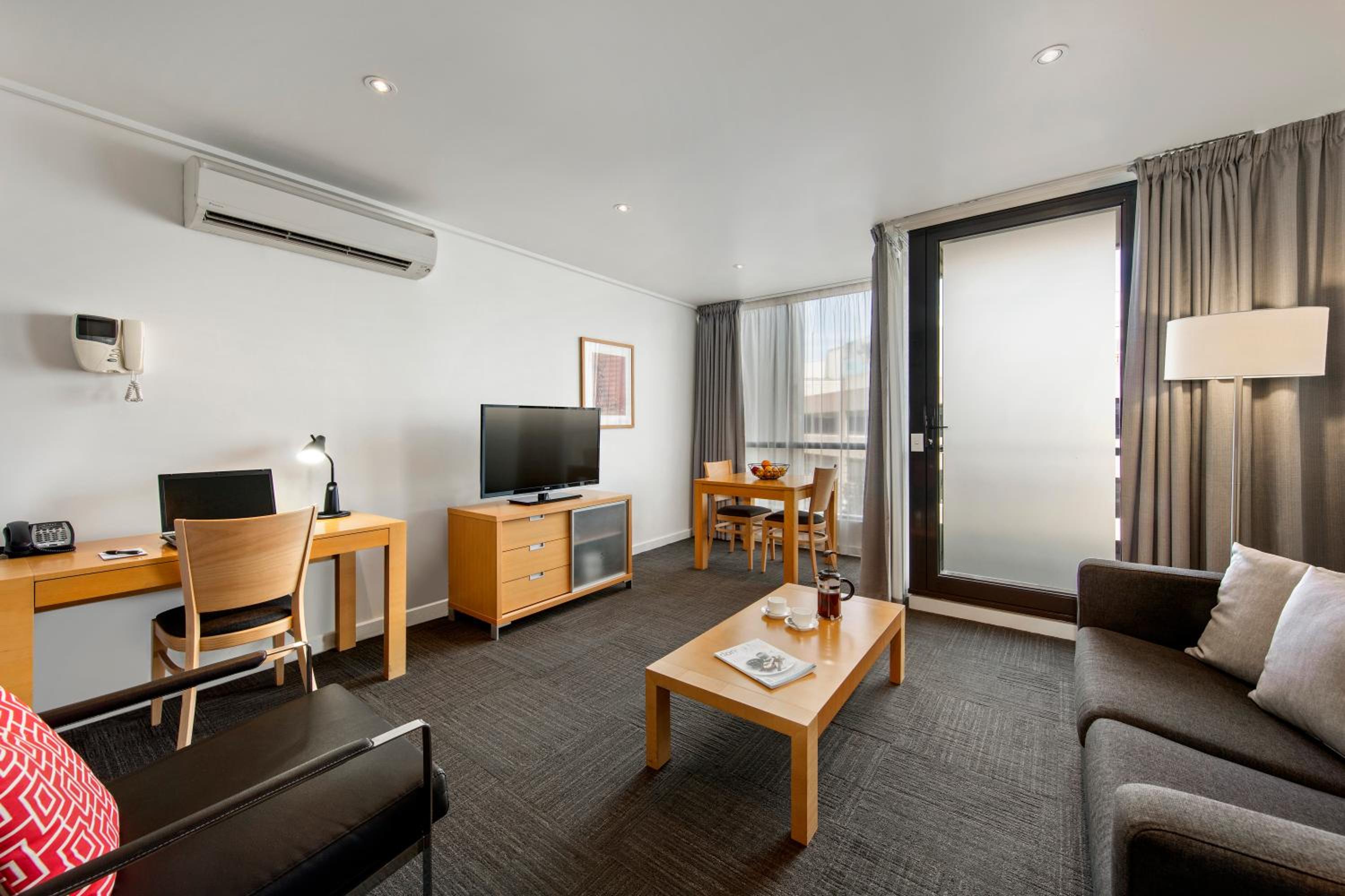 Enjoy spacious and modern apartments at Quest Southbank, each featuring a fully equipped kitchen and a private balcony, perfect for a comfortable stay.