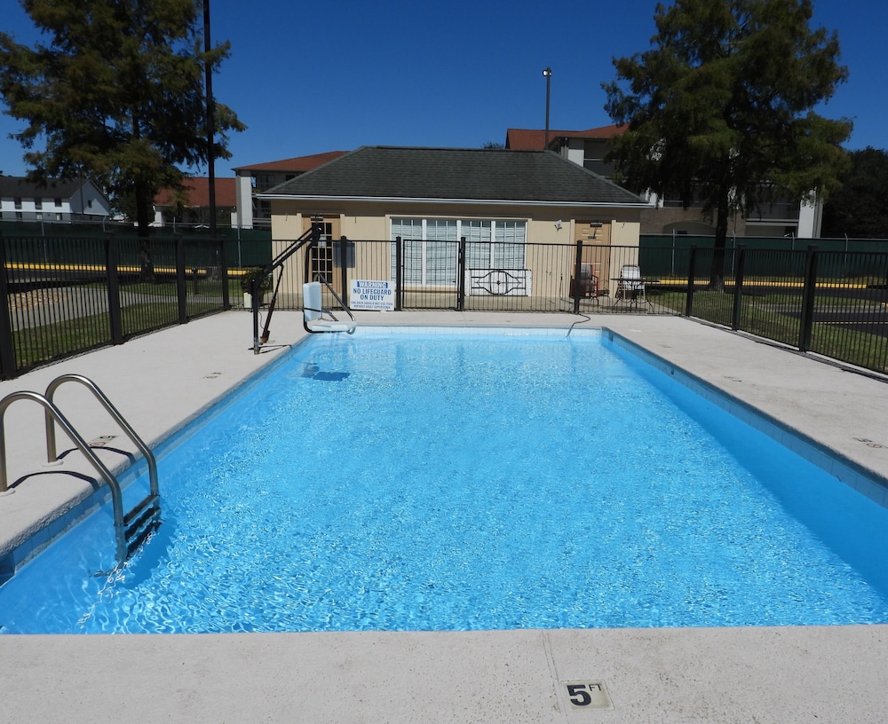 Good location just off I-10. Bed made noises when we changed position. Room and bath were dated. Low water pressure and water didn't get hot enough. Internet didn't work.