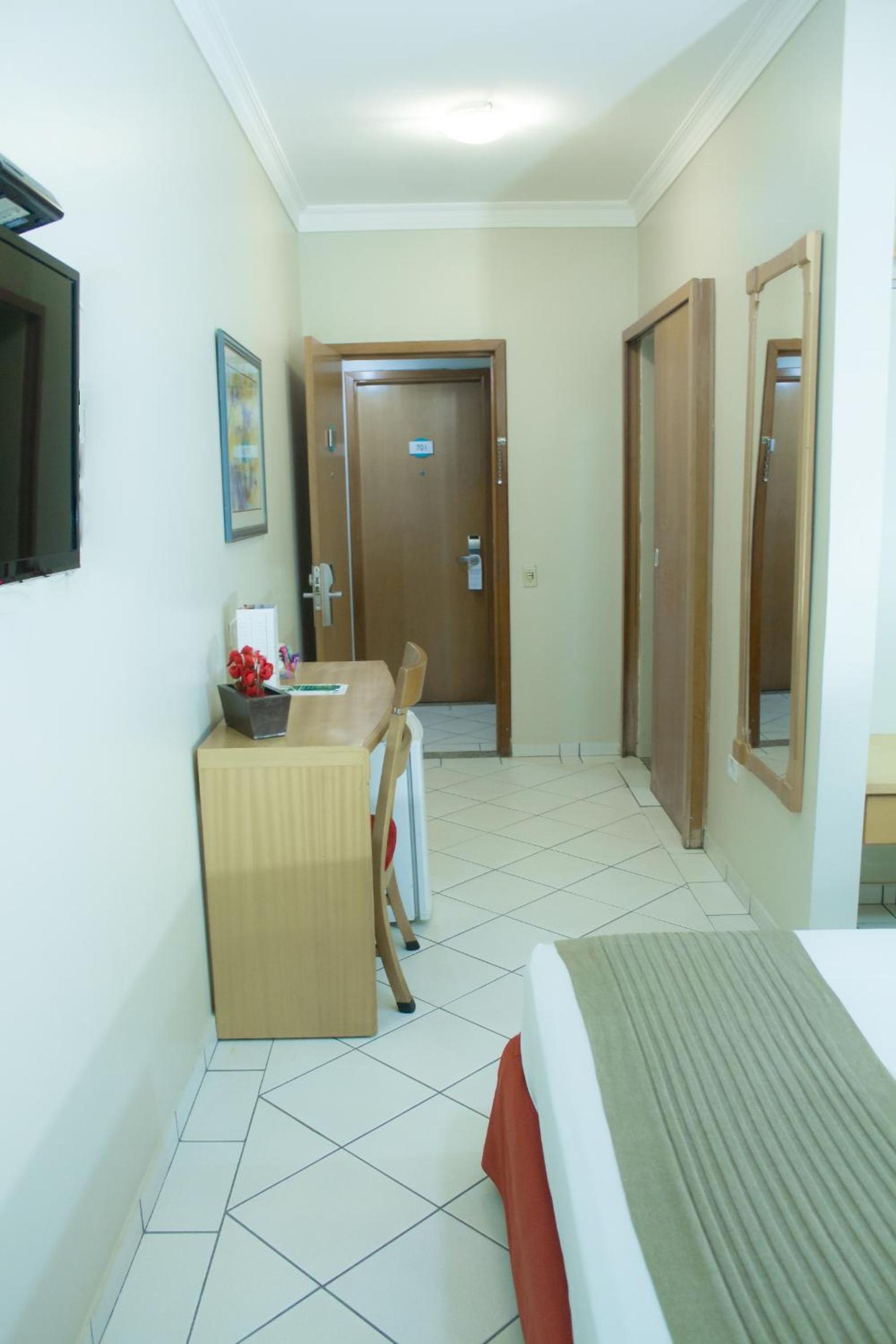 Limpeza do quarto. Cama confortável, ar condicionado funcionando bem. Quarto com bom isolamento acústico. Café da manhã bom, bom atendimento dos colaboradores. Televisão 32 polegadas funcionando com canais a cabo e TV aberta, teto de gesso com bom acabamento. Chuveiro bom com sistema de águas quente e fria.