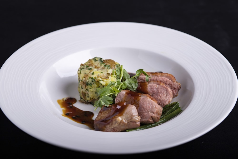 The food was good in the restaurant on both evenings. The cullen skink was superb. Breakfast was not so good. On the Monday morning coming down at 8am I was told that a large group had just left and so many items were no longer available. The person relaying this to me did so in a manner that seemed to accept this as okay, and even if unavoidable, was not something that was out of the ordinary or needed an apology.