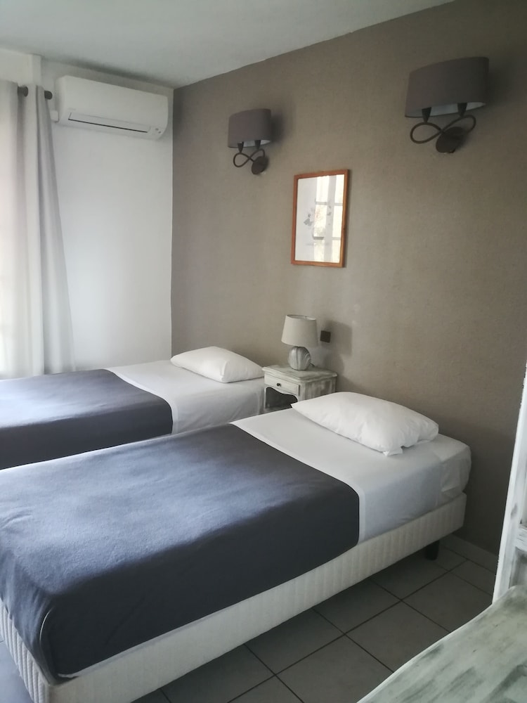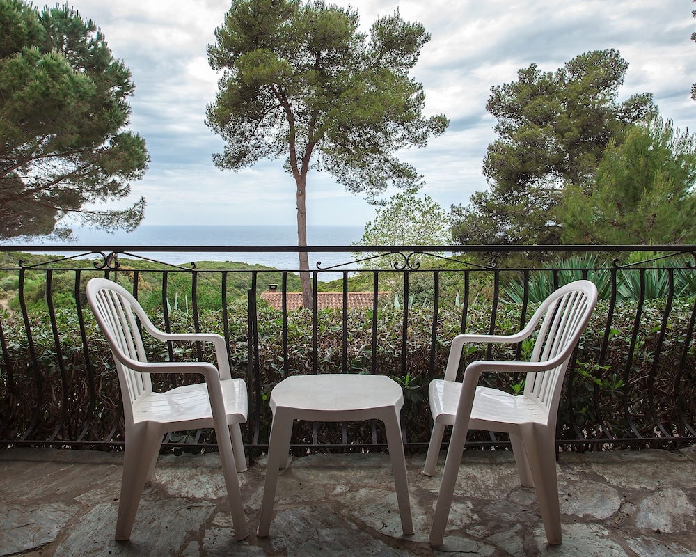 Les chambres sont très simples, mais climatisées, et la vue de l'hôtel est magnifique. Piscine et tennis tout à fait corrects, on gare la voiture facilement sous les pins. Diner correct, bien que la carte soit assez limitée; petit déjeuner très bien. le plus : chambre quadruple pour un couple avec deux enfants