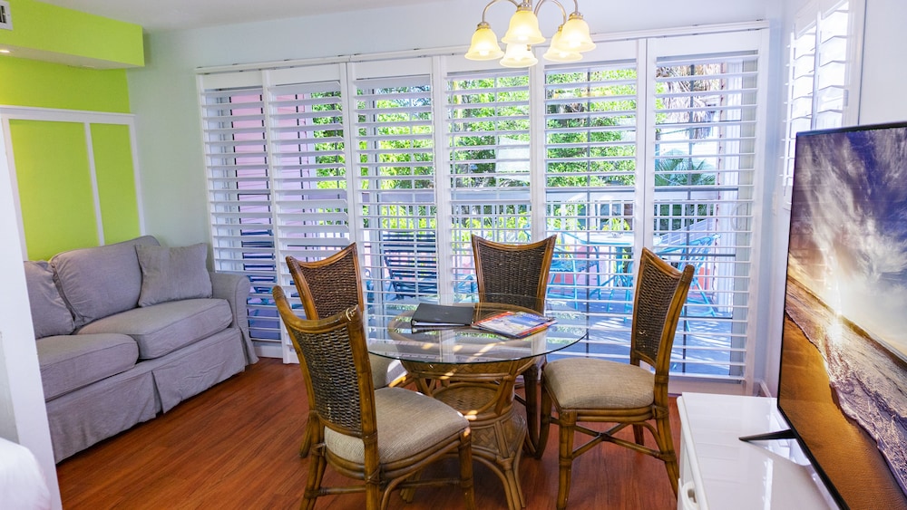 We enjoyed our stay at the Lighthouse resort. The renovation of the room wa well done. The furniture was comfortable and the room was clean. The property is in a great location - wither easy walking distance to beach, restaurants, and entertainments. We only found two negatives. 1 -the parking situation is horrible. We were issued a parking pass for the stay butf ound that the 10 spots in front of our back of the resort unit were take 70% of the time by non-resort guests. We asked the parking security guy and the front desk staff about it and were told, we know many spaces are taken by non-resort guests but we don't enforced so just keep looking. If we are paying close to $200 a night, we should not lose our parking to non-resort guests. The other negative is the room is extremely bright all night. The blinds do very little to block the lighting from the exterior of the hotel. It was a minor inconvenience and won't prevent us from staying again but I wanted to mention it for others who are sensitive to that type of thing.