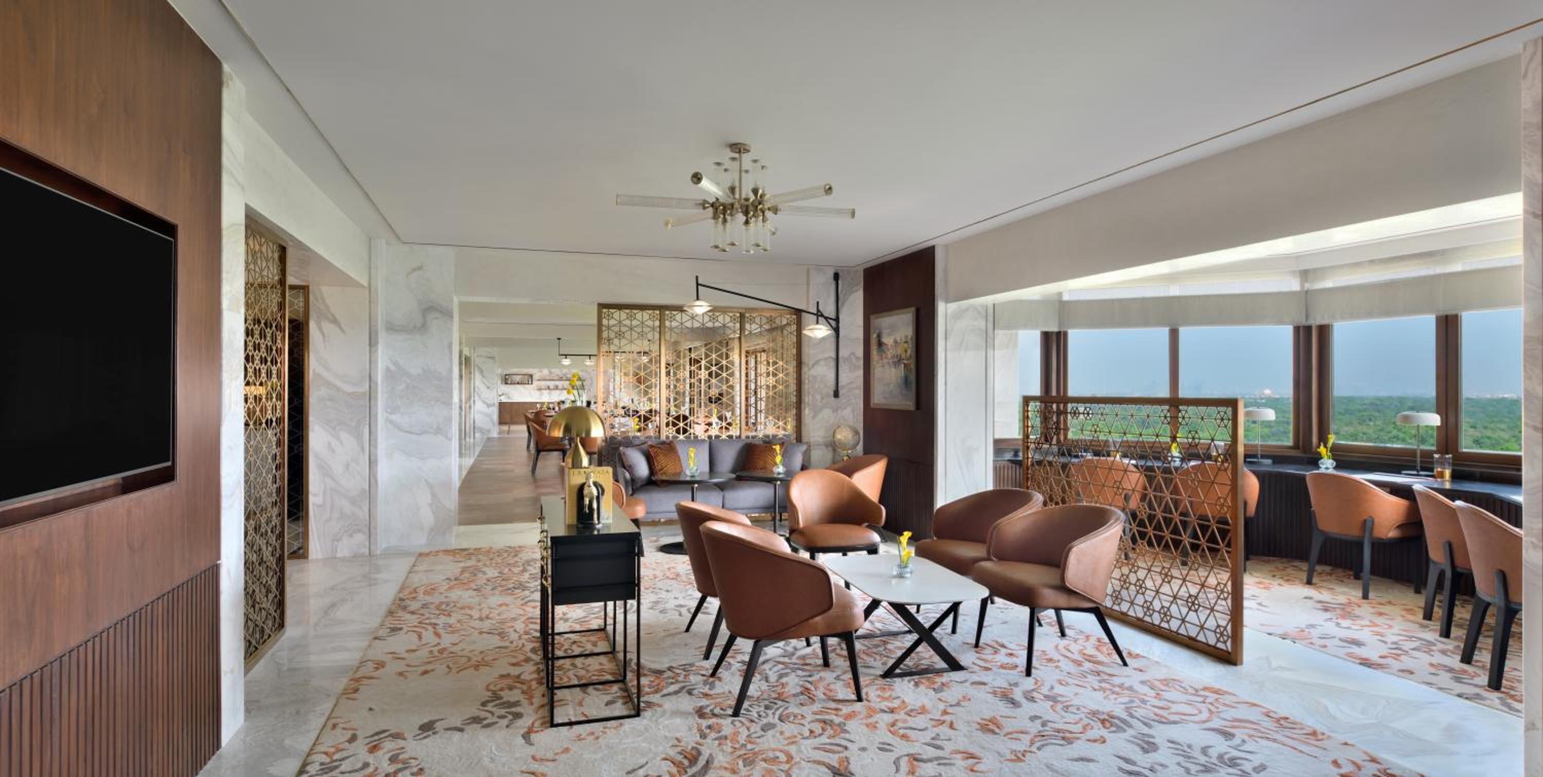 Opulent Accommodations: The hotel boasts 213 beautifully transformed accommodations, including Luxury Residences and Suites with breathtaking aerial views of Delhi's historic skyline, catering to heads of state, dignitaries, and leisure travelers.