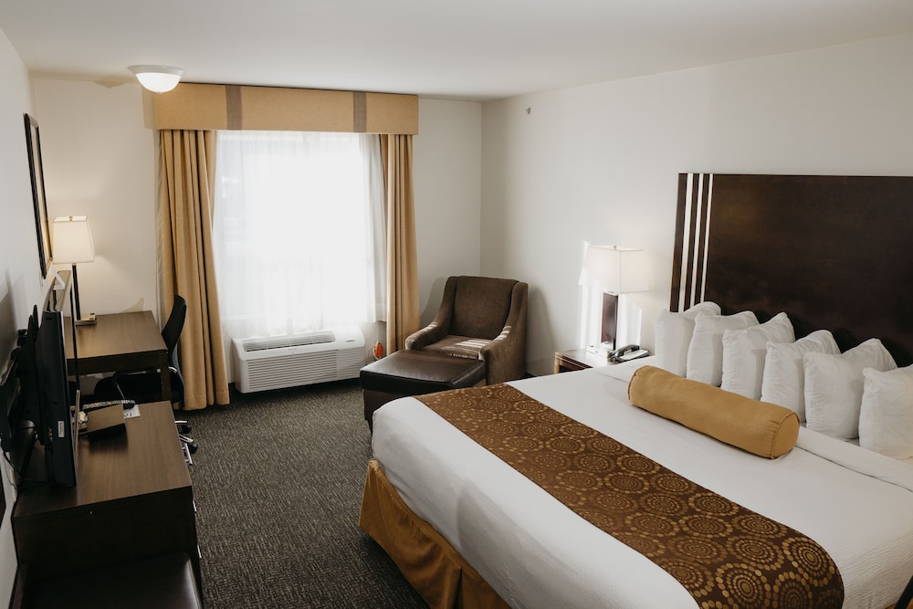 Settle into one of our 61 well-appointed guestrooms featuring pillowtop beds, refrigerators, microwaves, and 36-inch flat-screen TVs, ensuring a restful and entertaining stay.