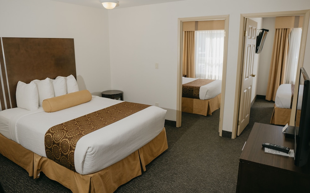 Family suite with 3 separate sleeping areas was nice. Convenient for overnight stay on our way to Penticton. Enjoyed the hot tub and walkable for food. Nice free breakfast.
