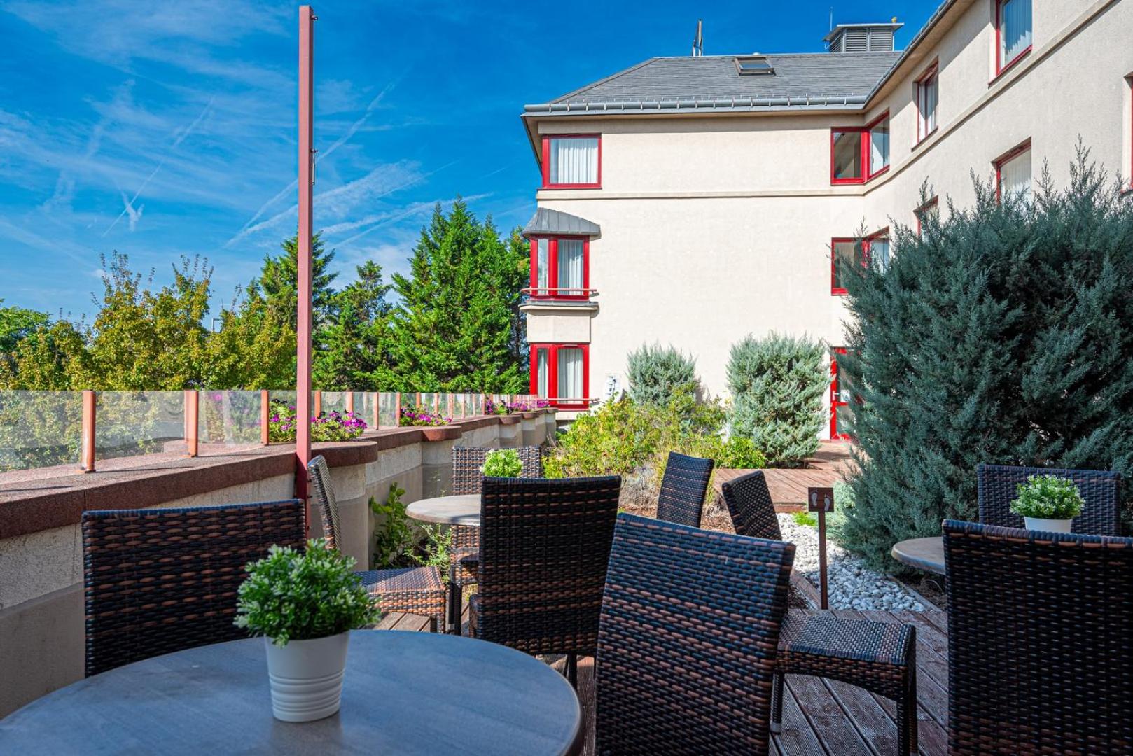 Castrum Hotel Székesfehérvár, located in Székesfehérvár, offers 4-star accommodation with a fitness centre, private parking, and a garden. Each room is equipped with modern amenities like air conditioning, a flat-screen TV, and a safety deposit box. The hotel also features a sauna for guests to unwind and relax.