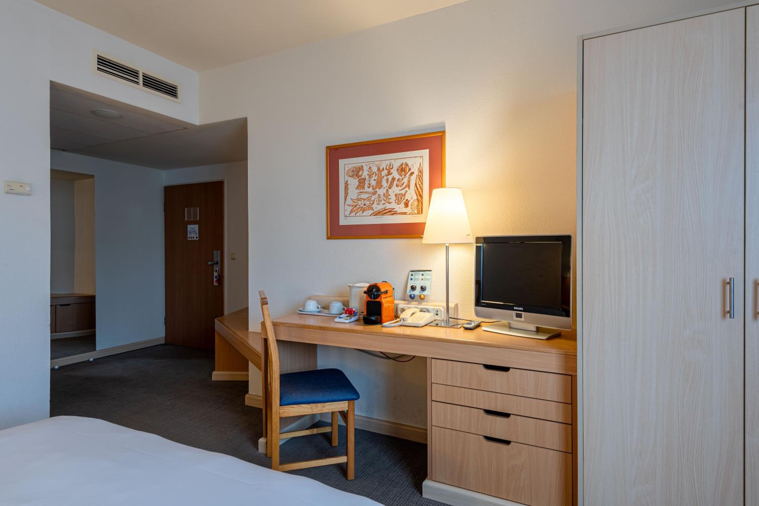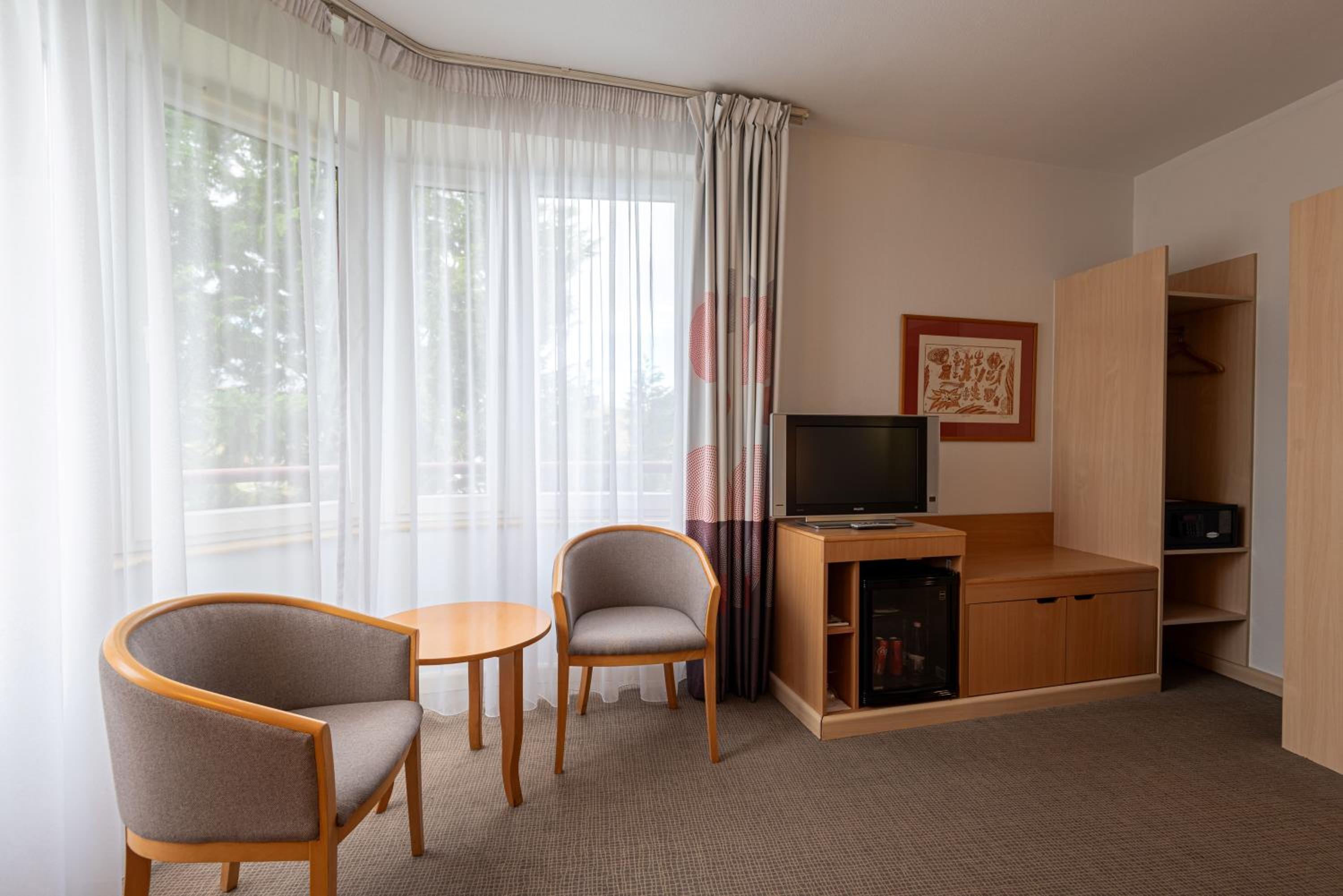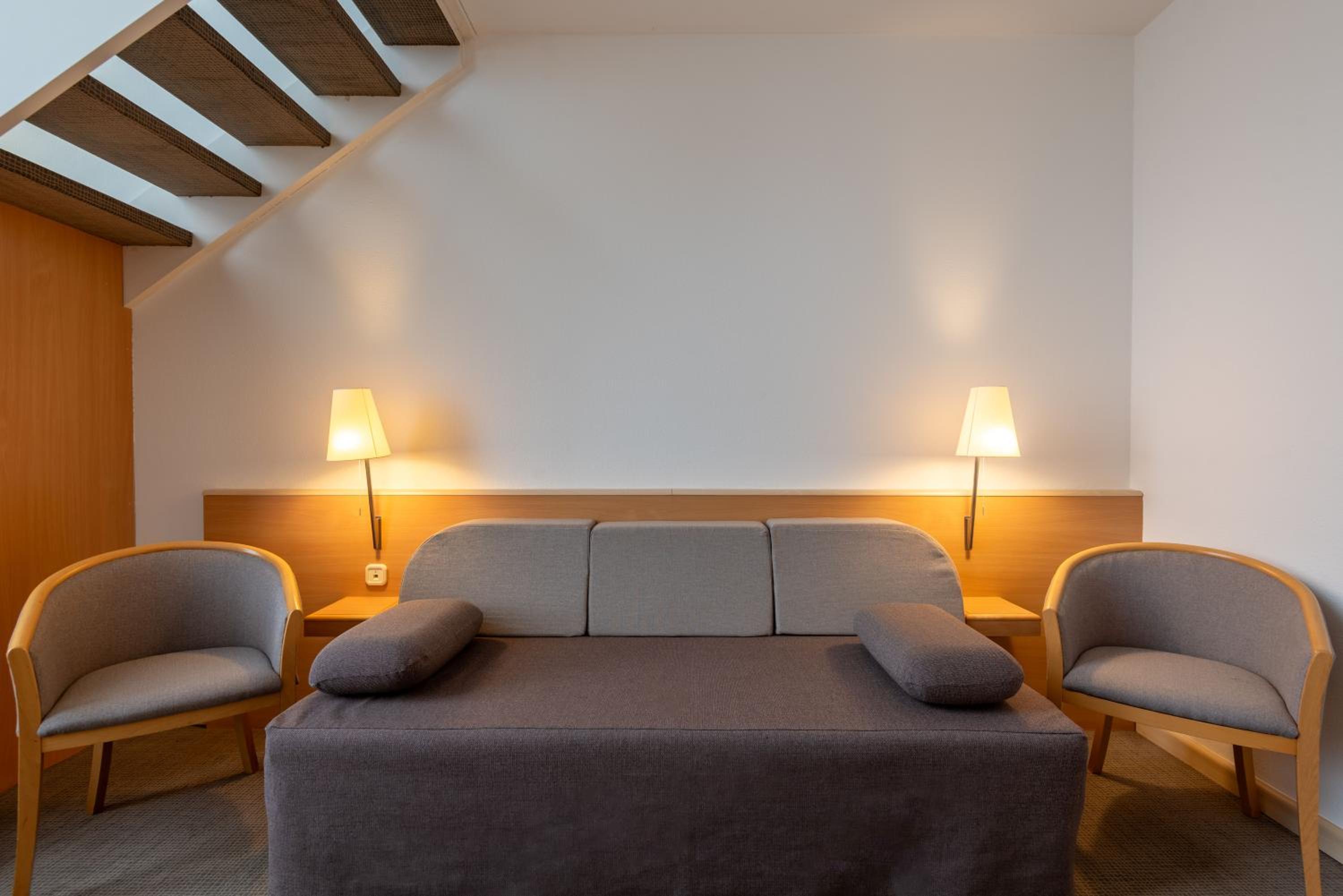 The opening hours of the small gym and the sauna was convenient. The Staff was kind. The bar offered nice local wine. The room interior was nicely decorated.