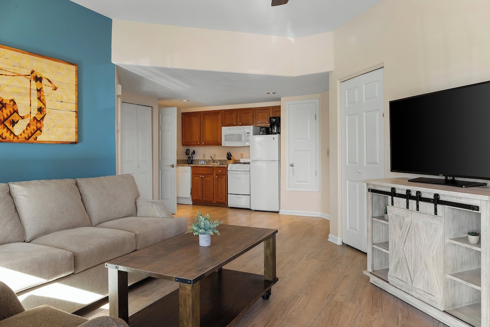 Make yourself at home in one of our 475 spacious guestrooms, equipped with kitchens, private balconies, and modern amenities like 32-inch flat-screen TVs and free Wi-Fi for a seamless stay.