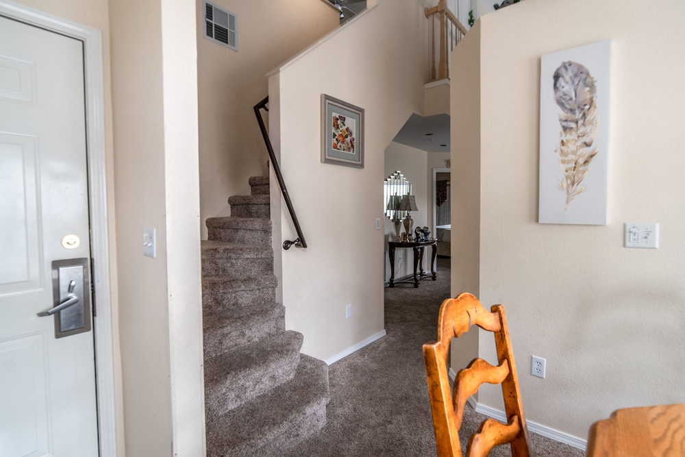 The living room had dried up cheerios still on the floor from the previous guest along with what we think was a chunk of taco meat. The kitchen smelled really bad but once we ran the disposal for a while it got better. The first sink in the master bath didn’t drain well at all so we just didn’t use it. The top comforter was filthy around the edges where it had touched other guest’s faces. The outside area was full of leaves and trash so we couldn’t even enjoy sitting out there. And the pool, Starbucks, restaurant were all the way back over to the hotel. We didn’t realize that when we booked. My husband and daughter played golf the night we checked in and the men in the pro shop were very snooty. When I went to check them in they asked for my voucher. I said that’s why the lady walked over with me, she said that was my voucher. That really made them angry and they both left me standing there alone so they could “have a talk with her”. When my husband went back in to sign for the cart they couldn’t stop talking and eating their Arby’s to even say hello. They had their food and bags right in front of my husband. He said it was very unprofessional. Overall we will not stay there again. And there were very limited supplies in the kitchen to use to cook with etc.