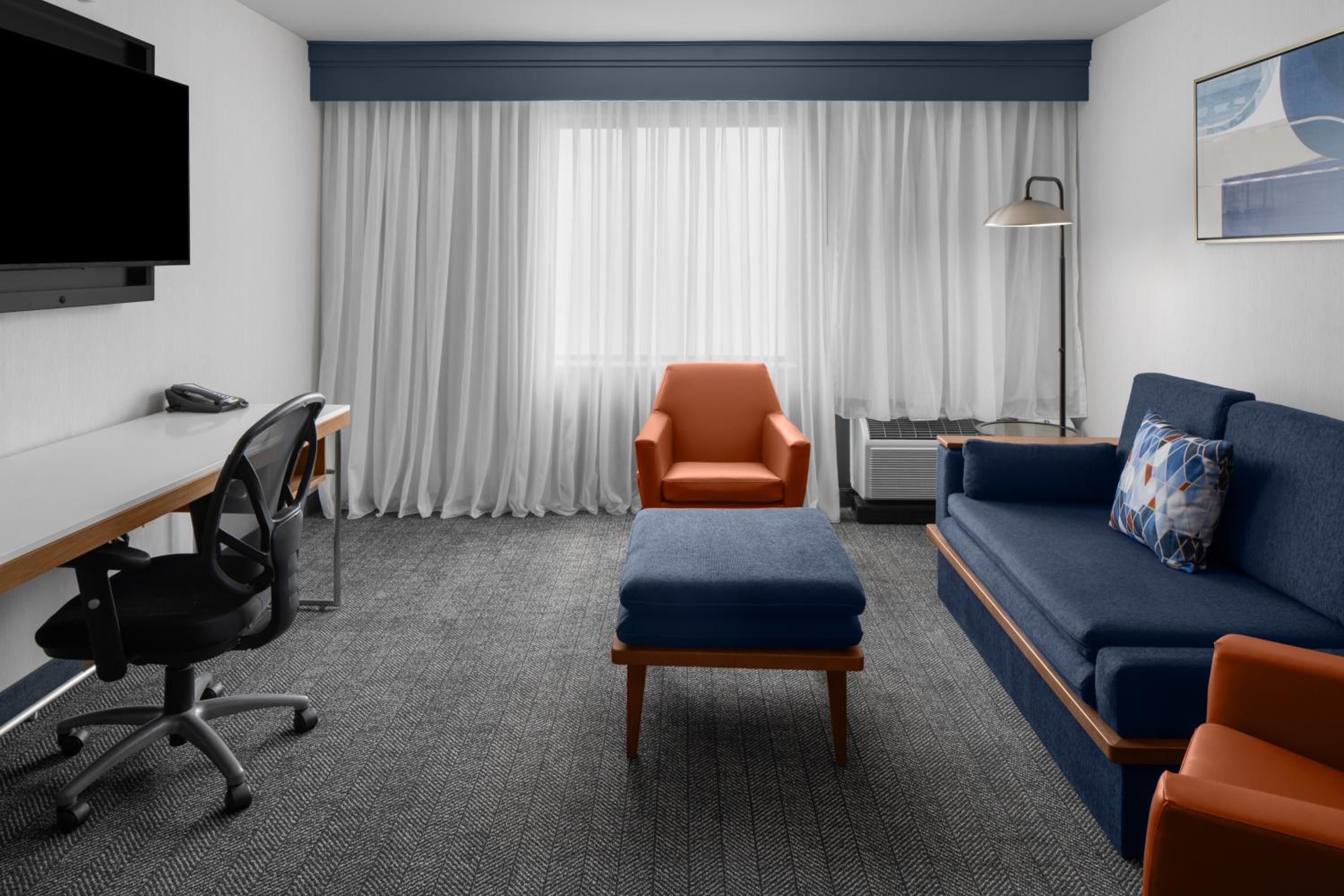 Experience a luxurious stay at Courtyard San Diego Central, offering modern amenities such as an outdoor pool, fitness center, and free bike rentals. Conveniently located near the University of San Diego, guests can explore nearby attractions like Old Town San Diego State Historic Park and San Diego Zoo. Indulge in American cuisine at the on-site restaurant with special dietary options available. After a day of activities like hiking and cycling, unwind on the sun terrace. With bilingual staff and a range of services, let us make your stay in San Diego unforgettable. Book your stay now and make the most of your visit to this vibrant city.