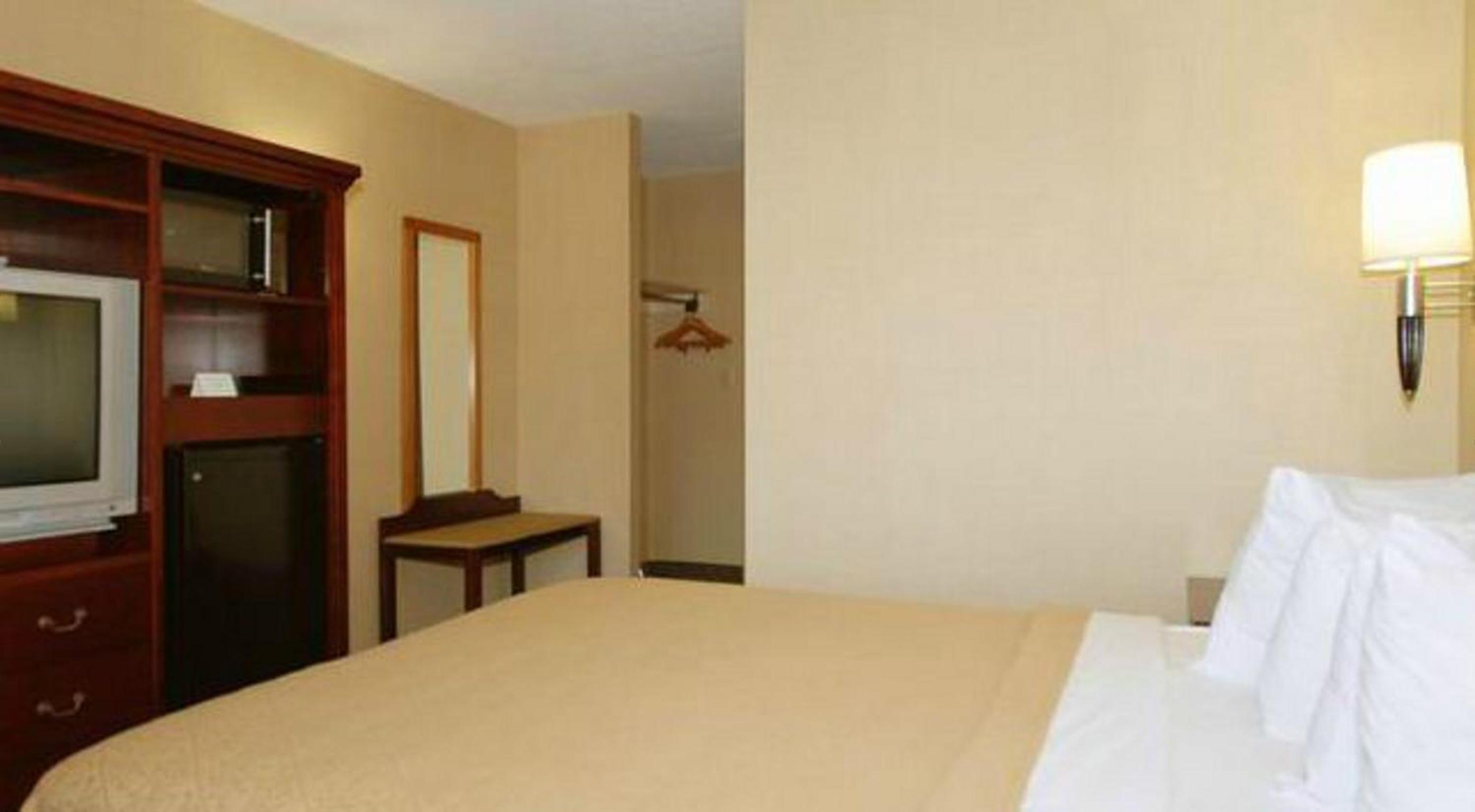 Almost everything. The interior of the hotel was sad and needed a lot of work. The floor right outside the elevator in the lobby was cracked. The ice machine did not work. The room we stayed in had mold in the shower, the sheets had not been washed and were dirty. There was a live fly and cockroach in the room when we checked in. There were no blackout curtains in the room, so we had the bright parking lot lights shining into the room. The breakfast was next to nothing. We ended up having to go to Wawa’s across the parking lot to get a quick breakfast. The staff seemed to be in their own world.