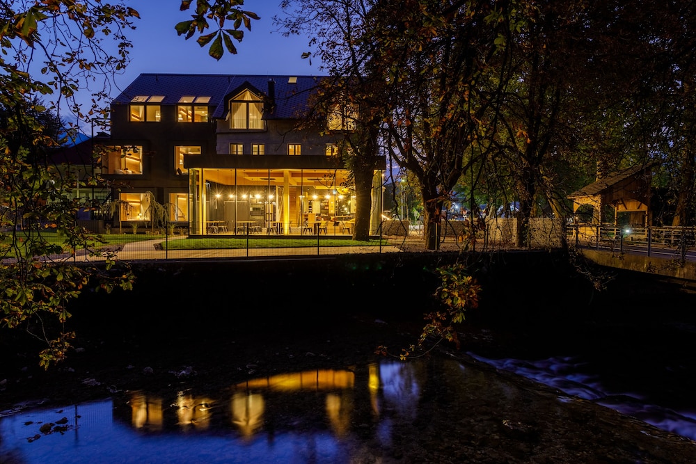 Fabulous hotel with lovely rooms, great views and a nice pool. Breakfast was lovely too. It is around 6 km from Lake Bohinj but there is a cycle path and public bus if required.