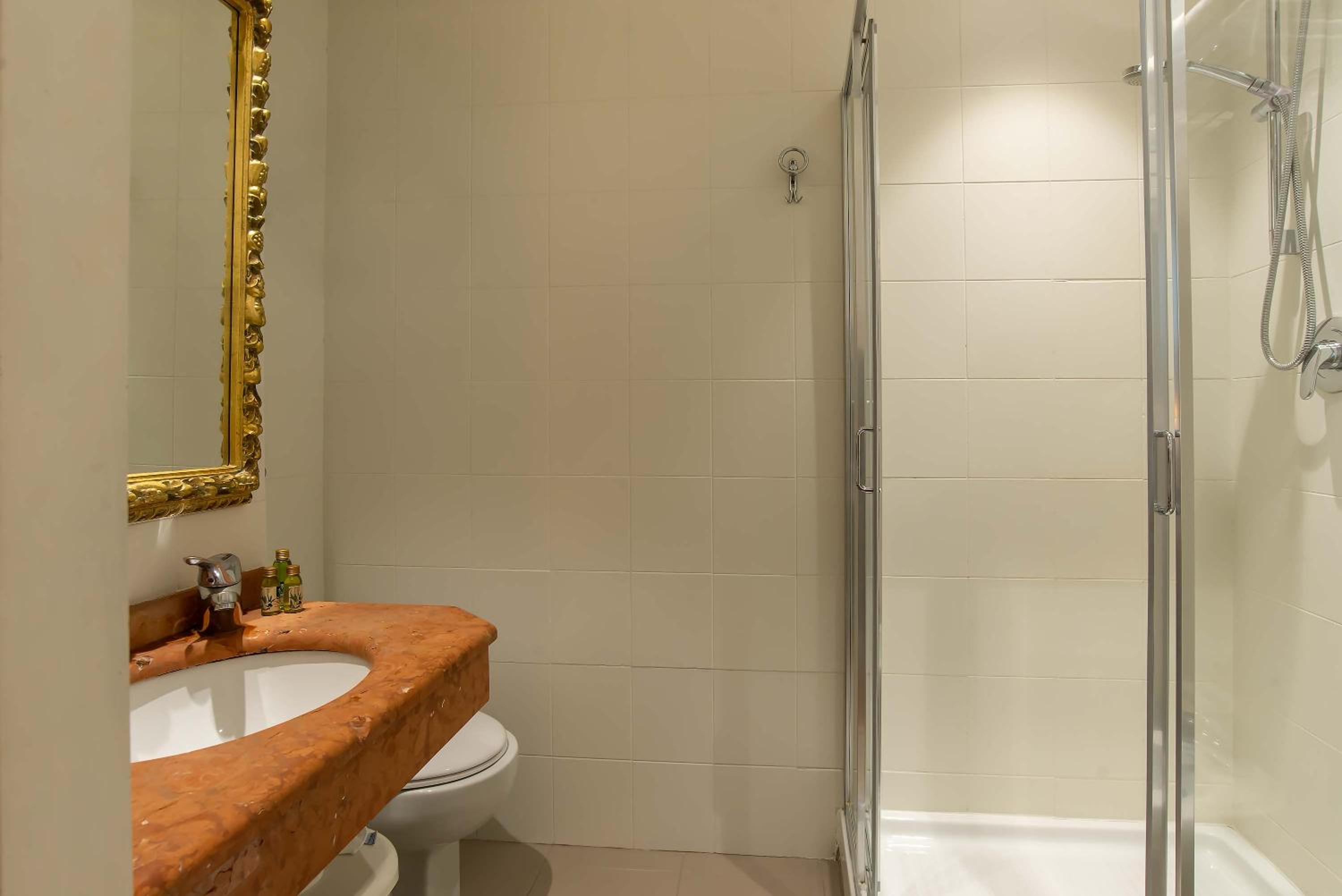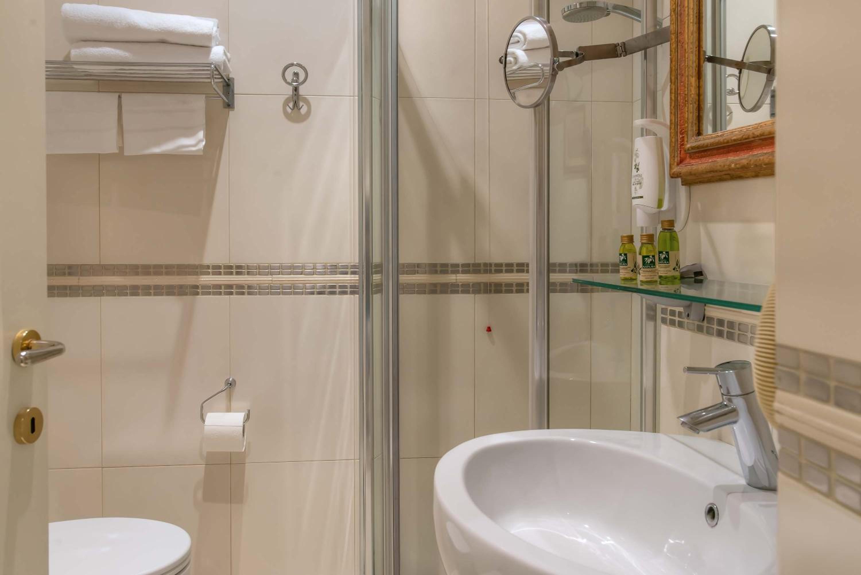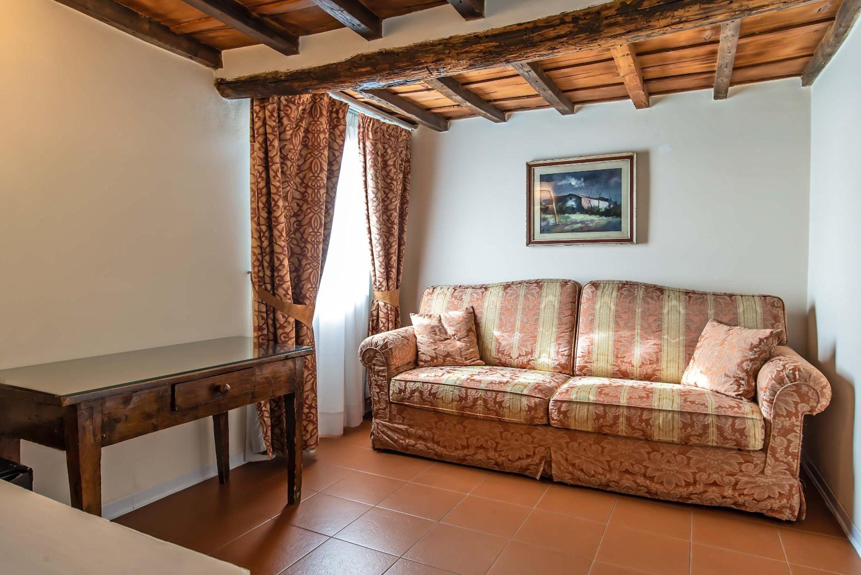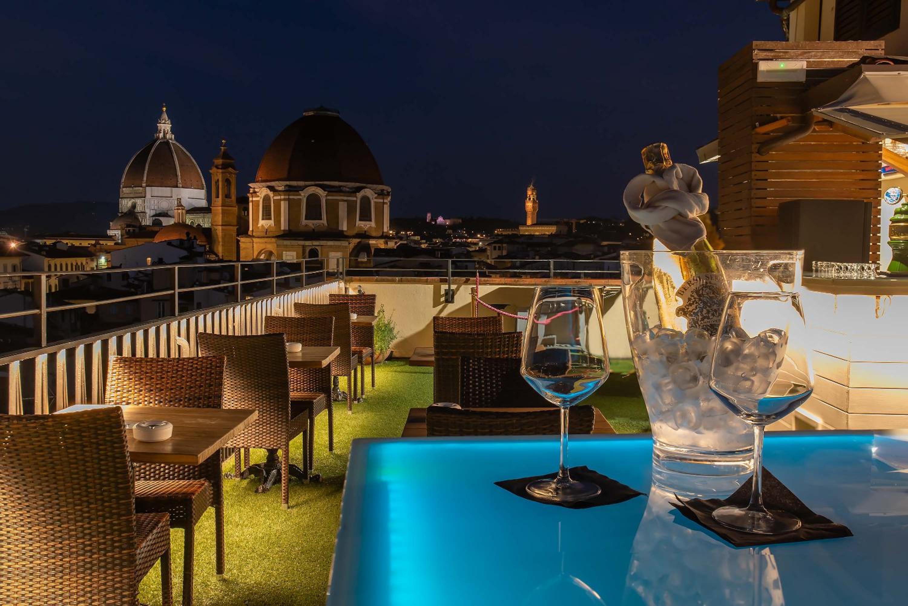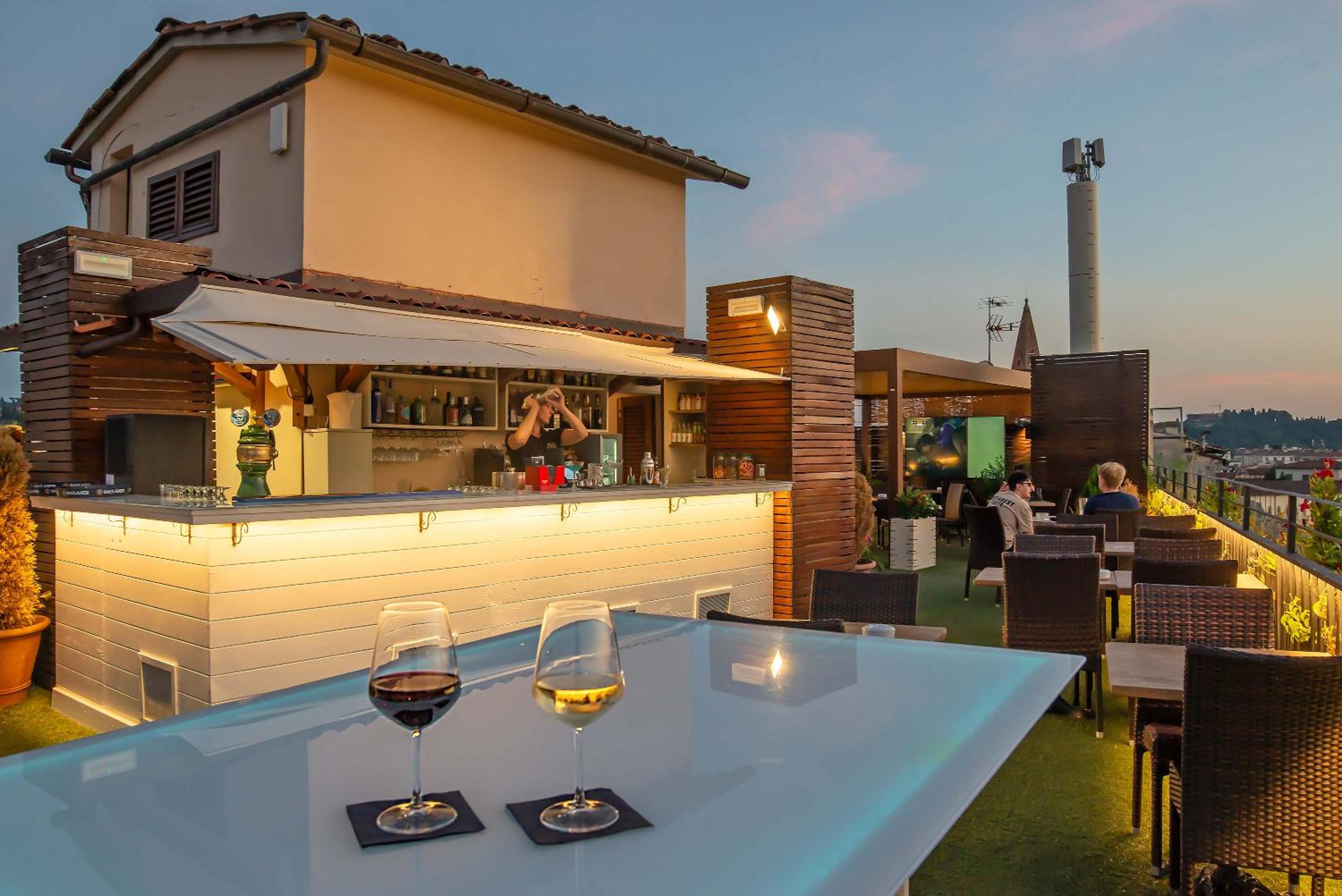 Enjoy stunning views of the historic center of Florence from the seasonal roof garden. Some rooms offer balconies with cathedral views, while others feature exposed wooden beams on the ceiling.
