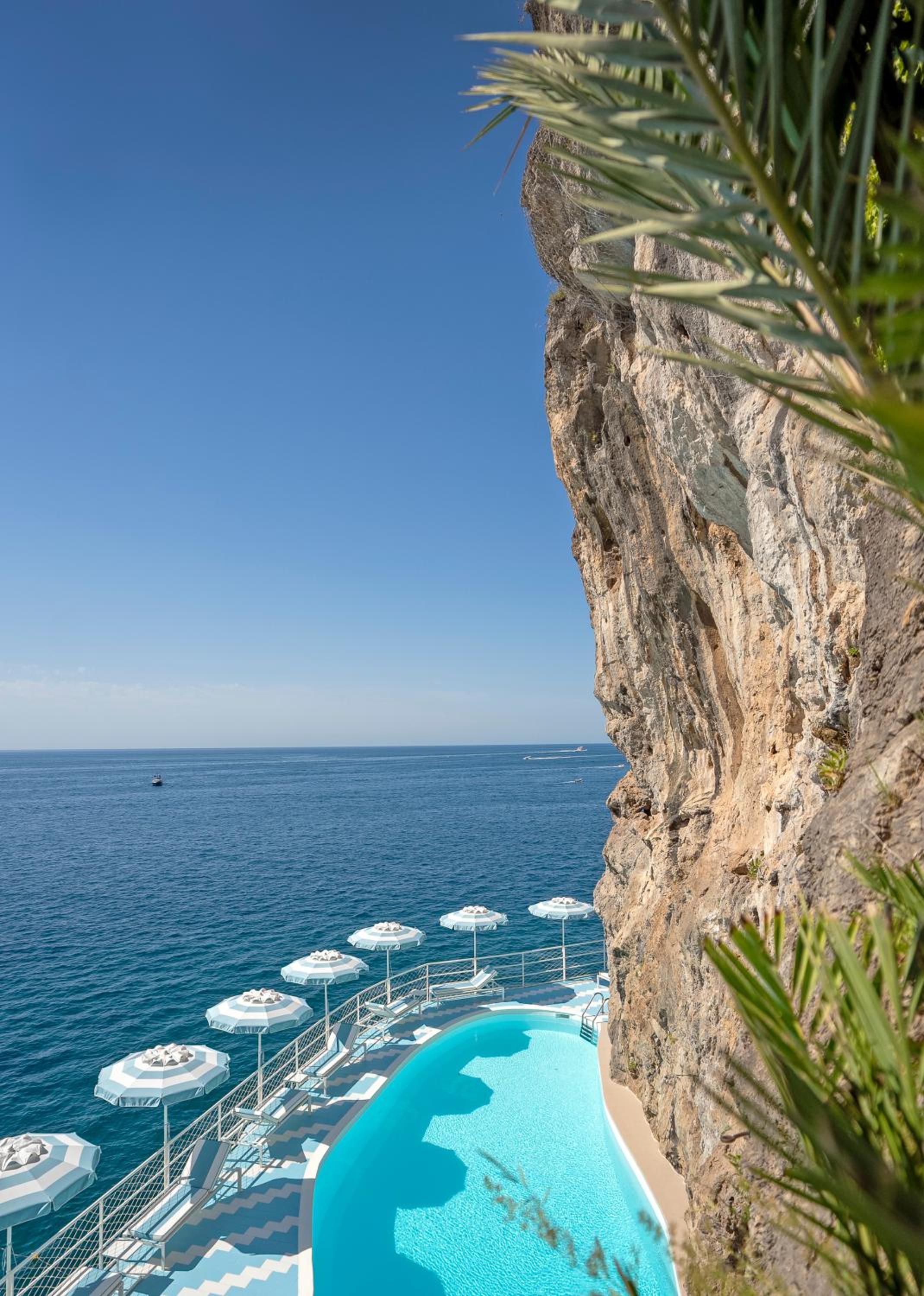 Experience ultimate relaxation with multiple sun terraces and a private beach accessible via a unique cliff-carved lift. Don't forget to savor the authentic flavors of Campania at the on-site restaurant, complemented by live music dinners.