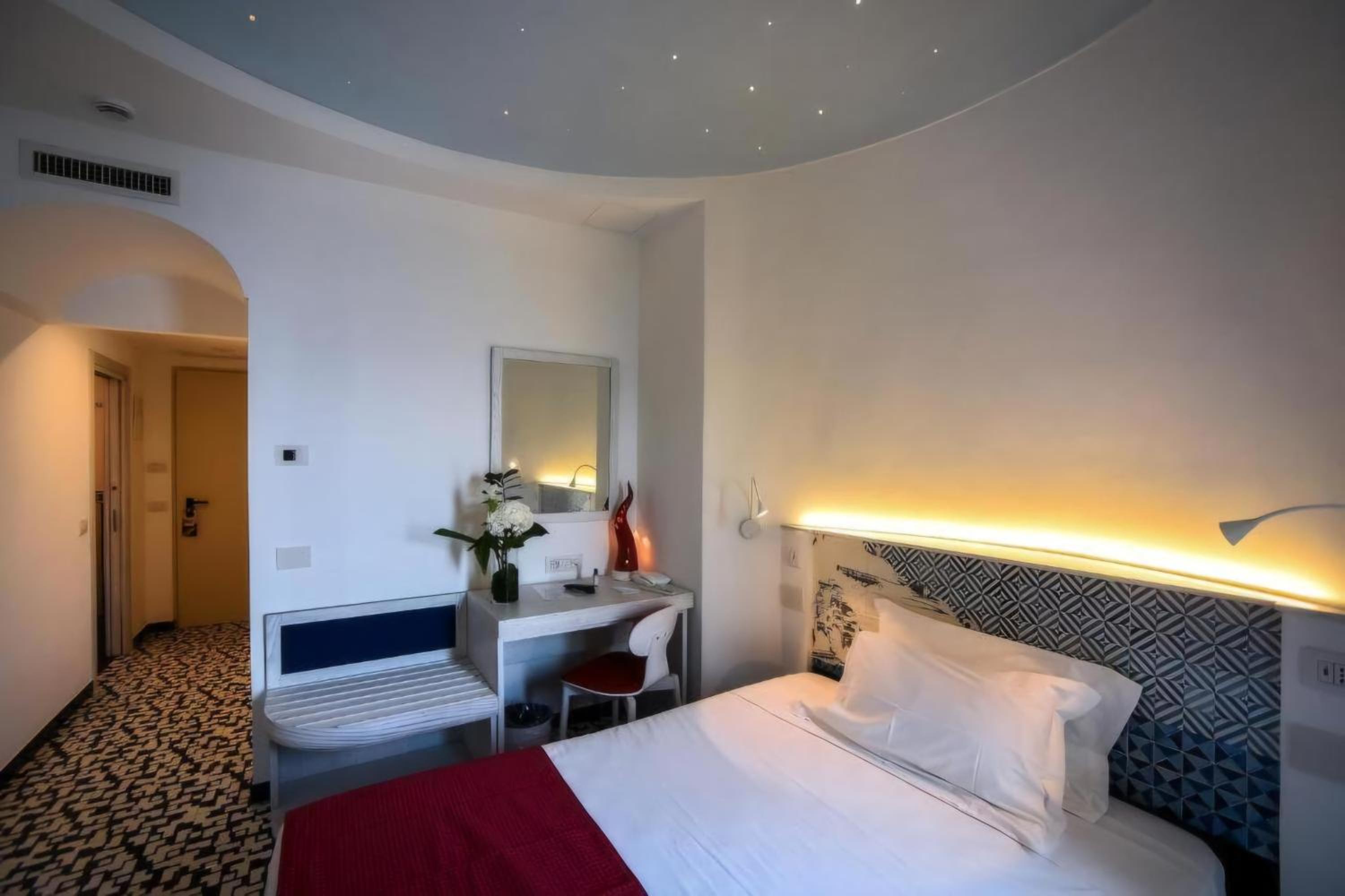 Indulge in Mediterranean elegance with each room equipped with a TV, air conditioning, and a minibar. Select rooms even boast a private balcony for a more intimate experience.