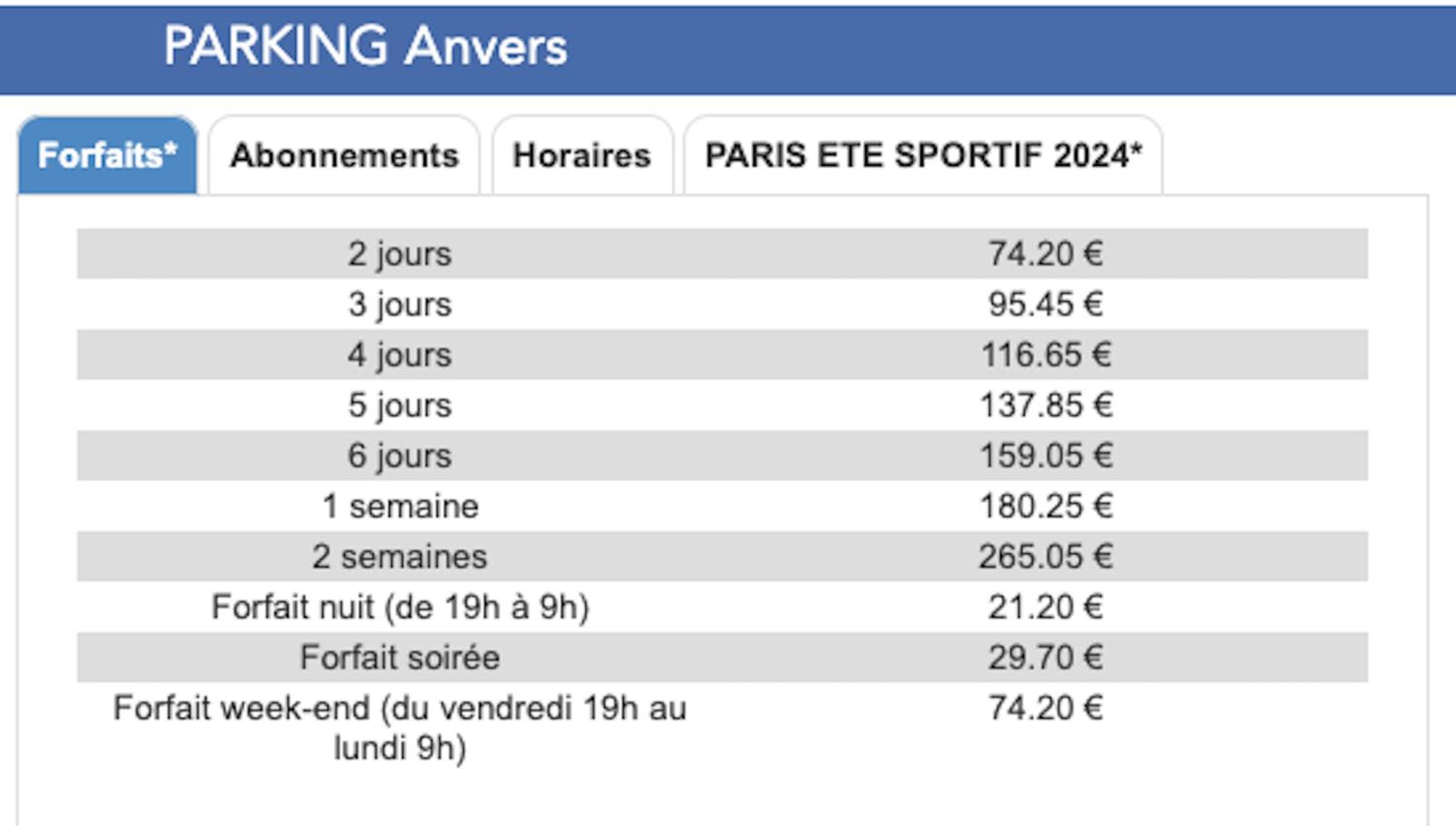 Public parking is possible at a location nearby (reservation is not possible) and costs EUR 40 per day.